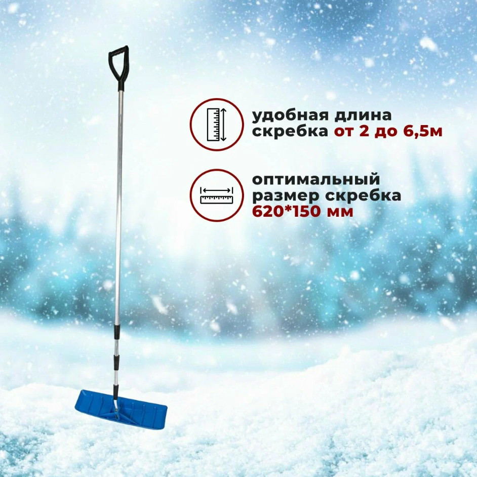 Движок-скребок для уборки снега с крыш (или кровельная лопата) с телескопической рукояткой до 6,2 м предназначен для уборки снега с крыш с целью защиты кровли от протечек и разрушений.