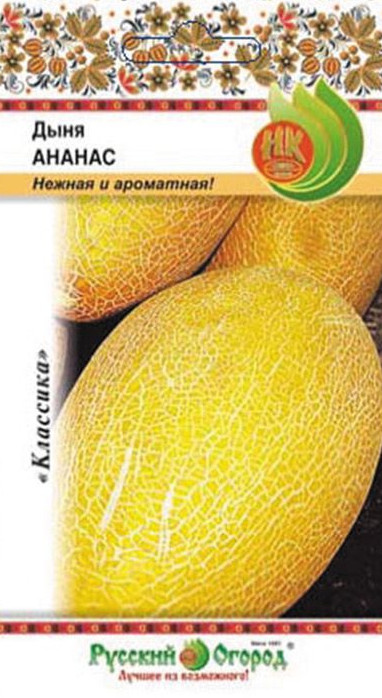 Среднеспелый сорт, от всходов до плодоношения – 100 дней. Плоды овально-округлые, с тонкой сеткой, массой 1,5–2,5 кг. Лежкость и транспортабельность хорошие.