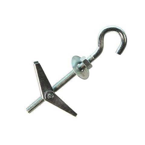Складной пружинный дюбель с крюком широко используется для монтажа, крепления подвесных элементов различной тяжести, таких как люстры, растяжки и прочее. Складной дюбель применяется только в том случае, если между потолком и поверхностью несущей конструкции имеется зазор. Складной дюбель с крюком представляет собой анкерное крепление следующей конструкции: стержень с нанесенной резьбой, на который навинчивается гайка, шайба тарельчатой формы и пружинный механизм со стопорными складными крыльями. Дюбель пружинный с крюком изготовляется из стали, которая затем пассируется и покрывается оцинкованный сплавом.