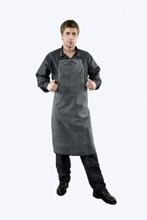 Фартук с цельнокроеным нагрудником, с замкнутой шейной бретелью.