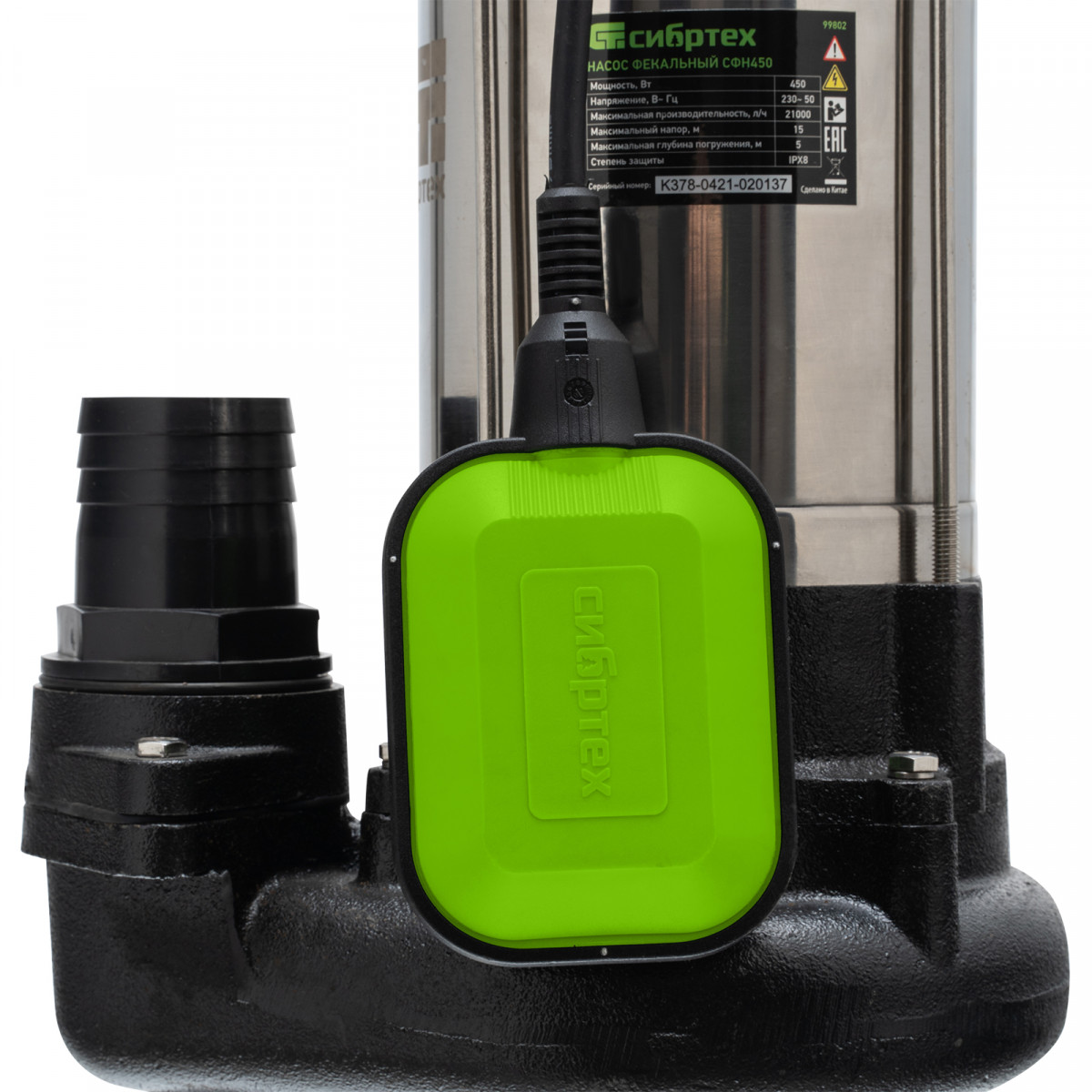 Фекальный насос СФН450, 450 Вт, напор 15 м, 21000 л/ч Сибртех