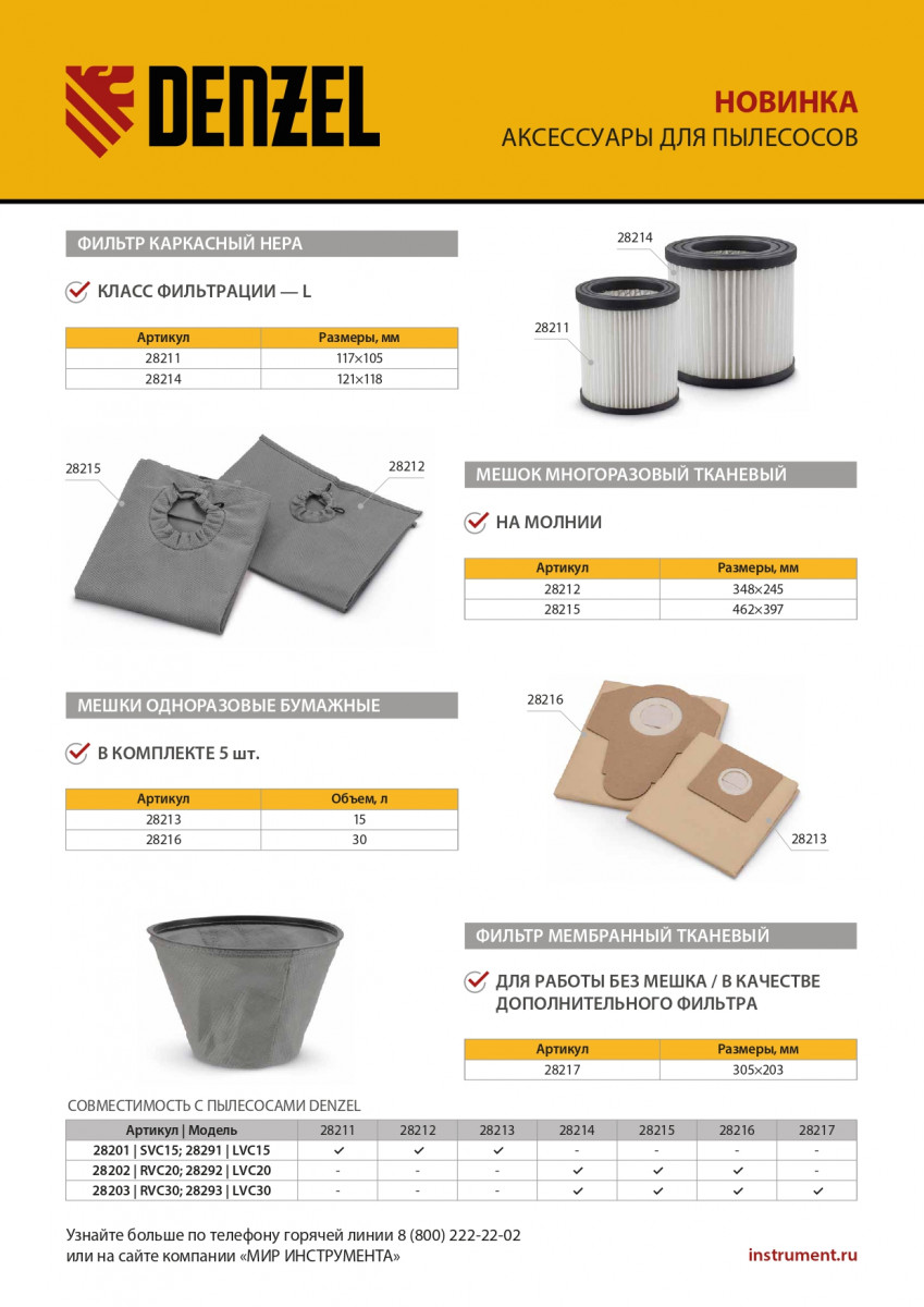 Фильтр каркасный-складчатый HEPA для пылесосов Denzel RVC20, RVC30, LVC20, LVC30 Denzel
