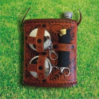Фляга(обш. кожей), зажигалка, 2 стакана раскладных(100гр).