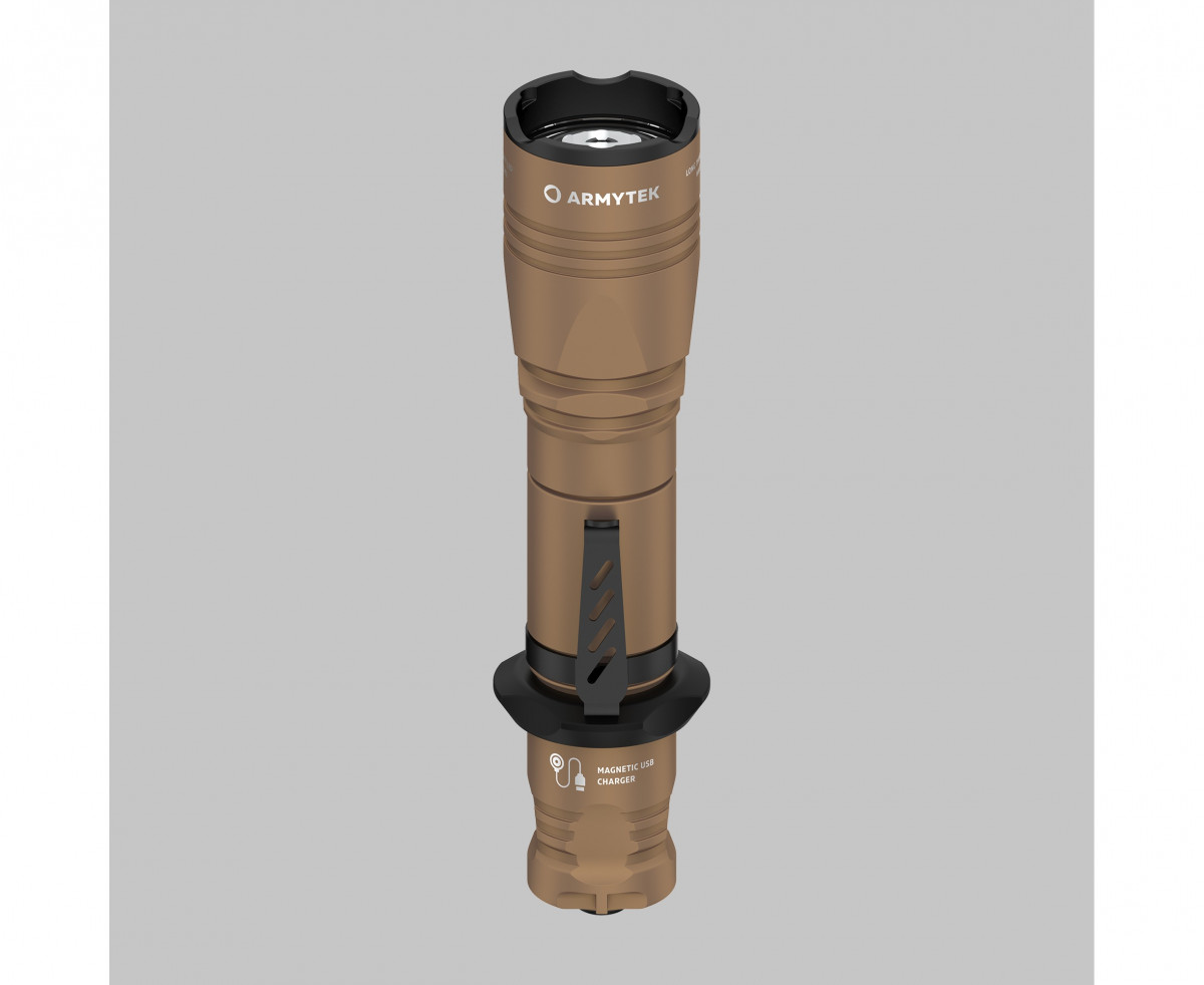 Фонарь ARMYTEK Dobermann Pro Magnet USB Sand Теплый с максимальной дистанцией света 363 метра.