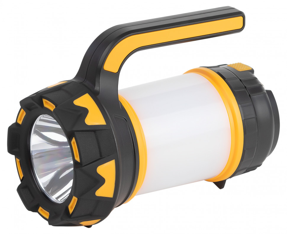 ЭРА PA-806 "Сириус" - эргономичный светодиодный фонарь-прожектор, работающий от аккумулятора. Удобно подзаряжается от USB при помощи кабеля, поставляемого в комплекте. Емкий литиевый аккумулятор 4200 мАч отлично держит заряд - 25 часов непрерывного свечения от одной подзарядки. Для удобства есть индикатор заряда. Устройство может использоваться как powerbank. Вы оцените 6 режимов свечения данного фонаря: головной свет 100% и 50% яркости; боковой светильник светит белым и красным светом разной яркости. Есть аварийное мигание красного цвета. ЭРА "Сириус" хорошо защищен от влаги и пыли - IP54. Этот фонарь-прожектор отличается высоким световым потоком - 820 Лм. Назван в честь самой яркой звезды ночного неба.