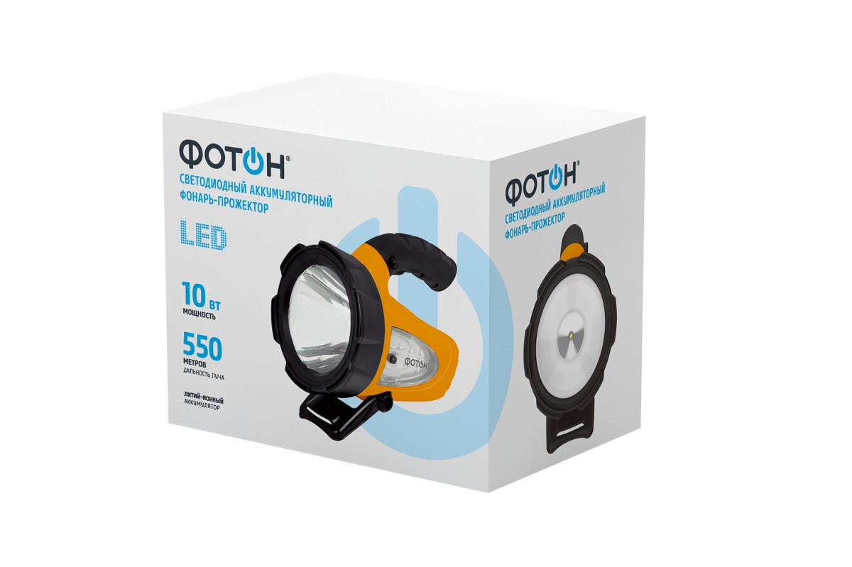 Аккумуляторные прожекторы «ФОТОН» в обновленном дизайне обеспечивают яркий дальний свет, удобно лежат в руке и снабжены дополнительными функциями для использования в условиях открытых пространств. Мощный светодиод и рефлекторный отражатель обеспечивают дальность луча от 250 до 550 метров. Регулируемая опора позволяет ставить фонарь на различные поверхности и менять угол его наклона. Двухпозиционная рукоять в моделях за один оборот меняет положение удерживания фонаря. Зарядное устройство от бытовой сети 220В в комплекте. Встроенный Li-Ion аккумулятор.Аварийный сигнал, автомобильное зарядное устройство в комплекте. Мощный светодиод 5Вт.
