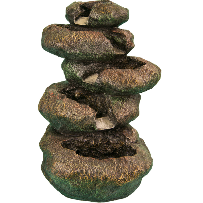 Садовый фонтан - декоративный и функциональный. Для установки и подключения необходимы электричество и вода. Далее необходимо фонтан подключить к электричеству и вода начинает фонтанировать, увлажняя воздух.