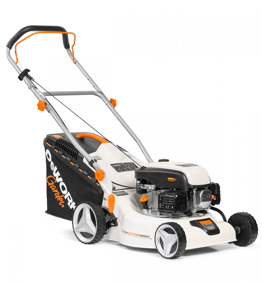 Бензиновая газонокосилка DeWorks L 43P используется для кошения газонной травы на частном участке.Корпус из стали надежно защищает внутренние элементы агрегата от повреждений и внешних воздействий.Удобство использования. Травосборник объемом 55 л оснащен индикатором для удобства контроля за его заполнением.Складная рукоятка обеспечивает компактность при хранении и транспортировке газонокосилки.4,5 л.с, 145 см3, 42 см, несамоходная, травосборник 55л, 25-75мм - центральная, колеса 63/81 мм.