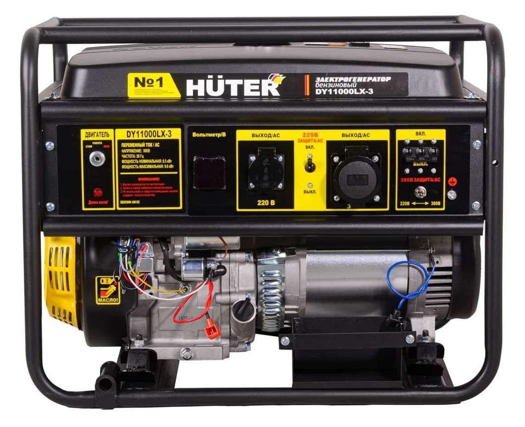 Электрогенератор Huter DY11000LX-3-электростартер 380В 64/1/73 – портативная компактная электростанция, обеспечивающая электроснабжение бытовой техники и профессионального оборудования, питающегося от трёхфазной сети 380 Вольт. Это самый выгодный бензиновый электрогенератор, с оптимальными техническими характеристиками и низким расходом топлива.