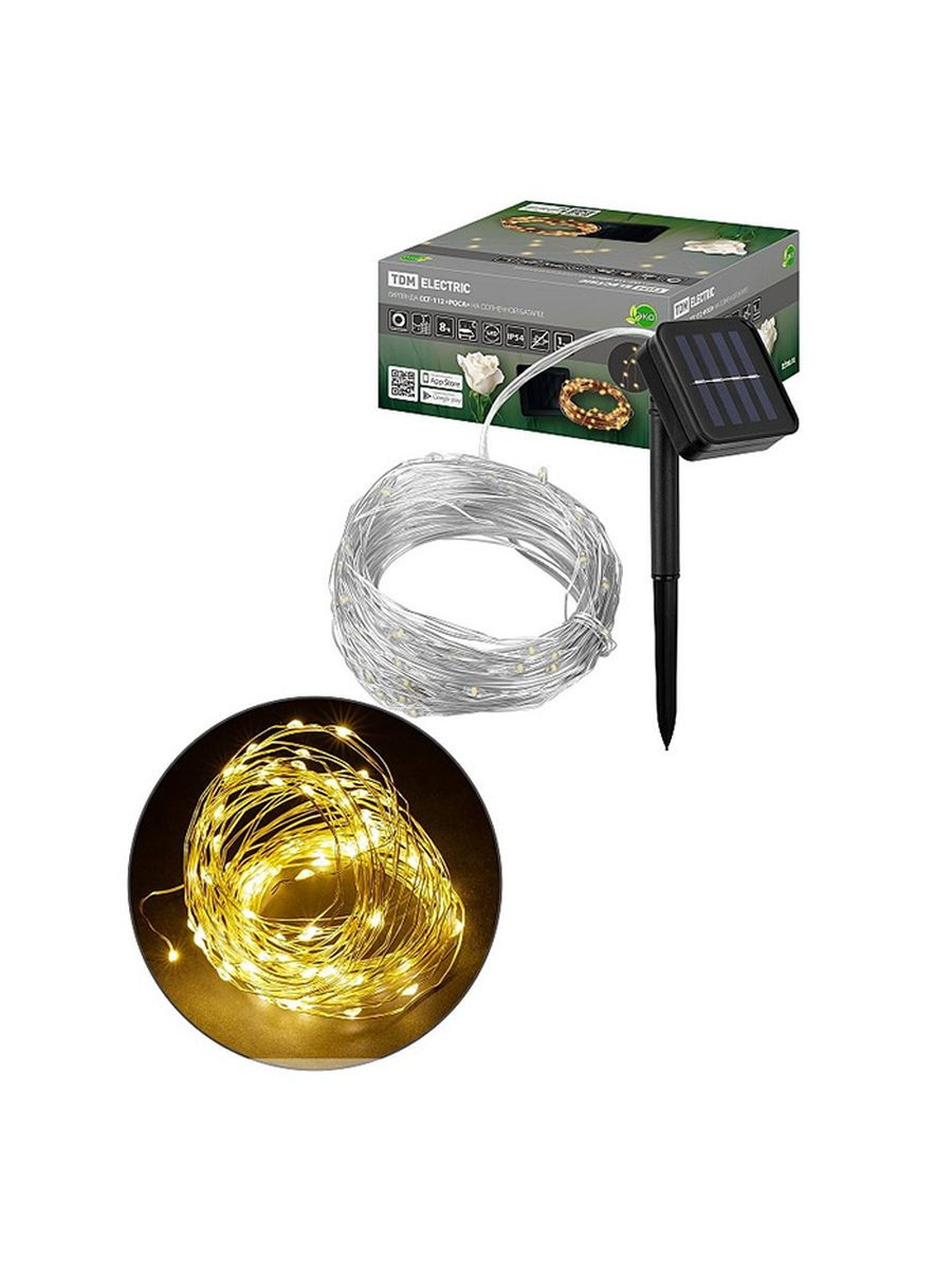 Гирлянда садовая на солнечной батарее 10 м медная нить 600 мАч LED 100 теплый белый TDM