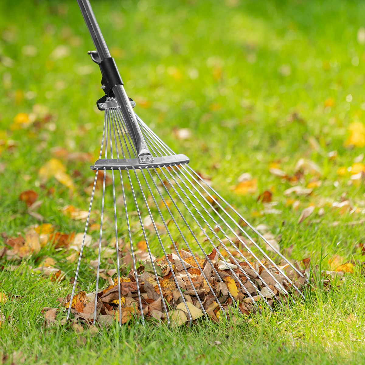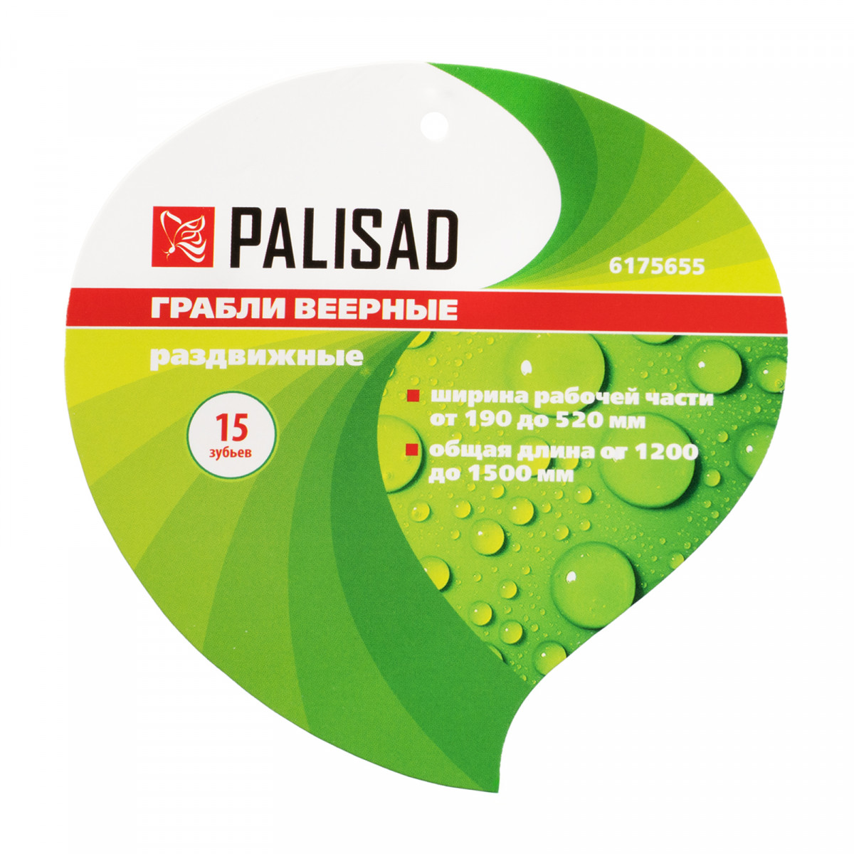 Грабли веерные стальные, 190 - 520 х 1200 - 1500 мм, 15 зубьев, раздвижные, стальной черенок, Palisad