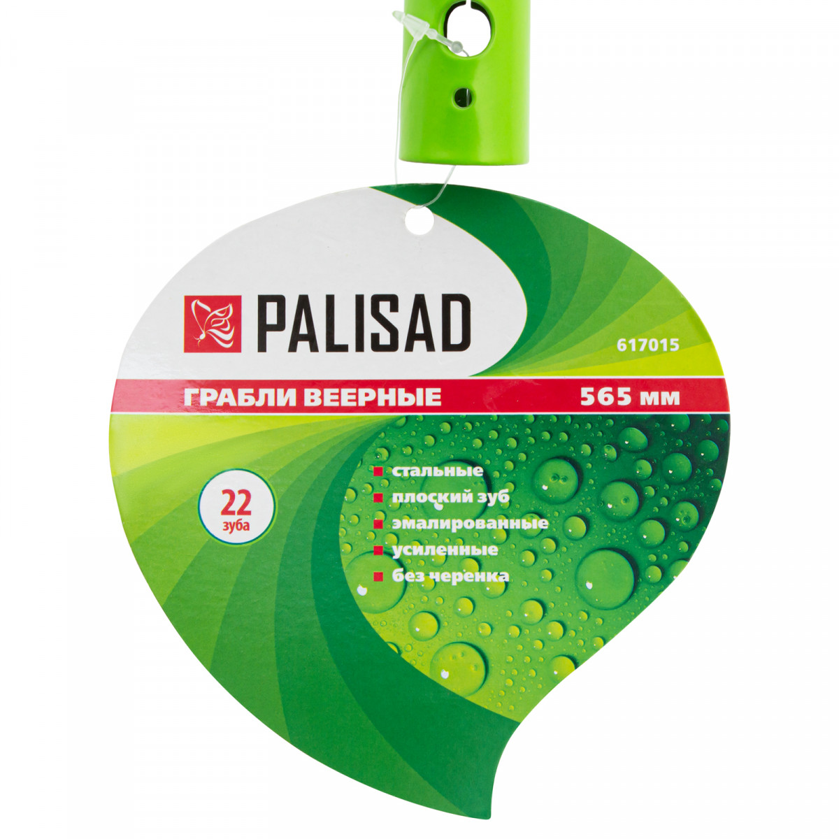 Грабли веерные стальные, 565 мм, 22 плоских зуба, эмалированные, усиленные, без черенка, Palisad