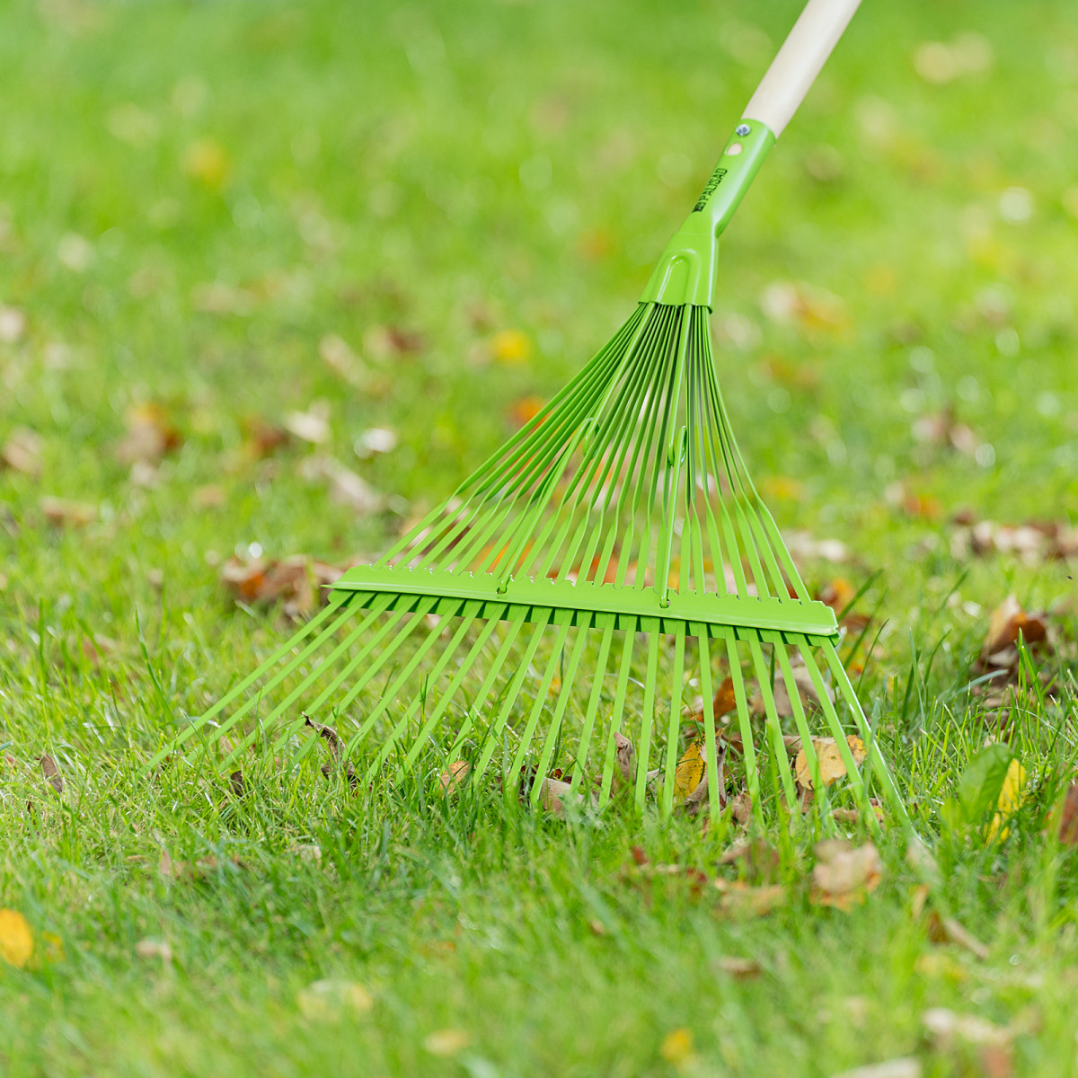 - Прочность и долговечность — грабли изготовлены из среднеуглеродистой стали и покрыты порошковой эмалью для защиты от коррозии.