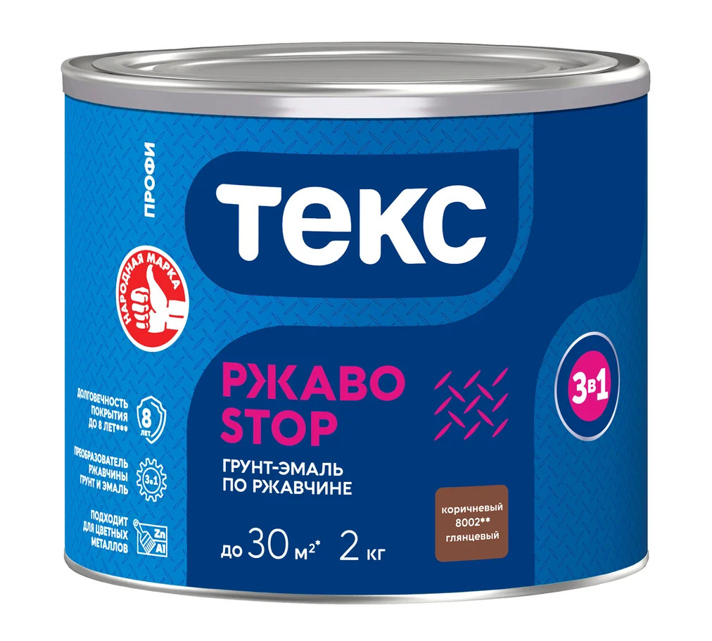 Грунт-эмаль 3в1 РЖАВОSTOP ПРОФИ коричневая глянцевая 2кг ТЕКС