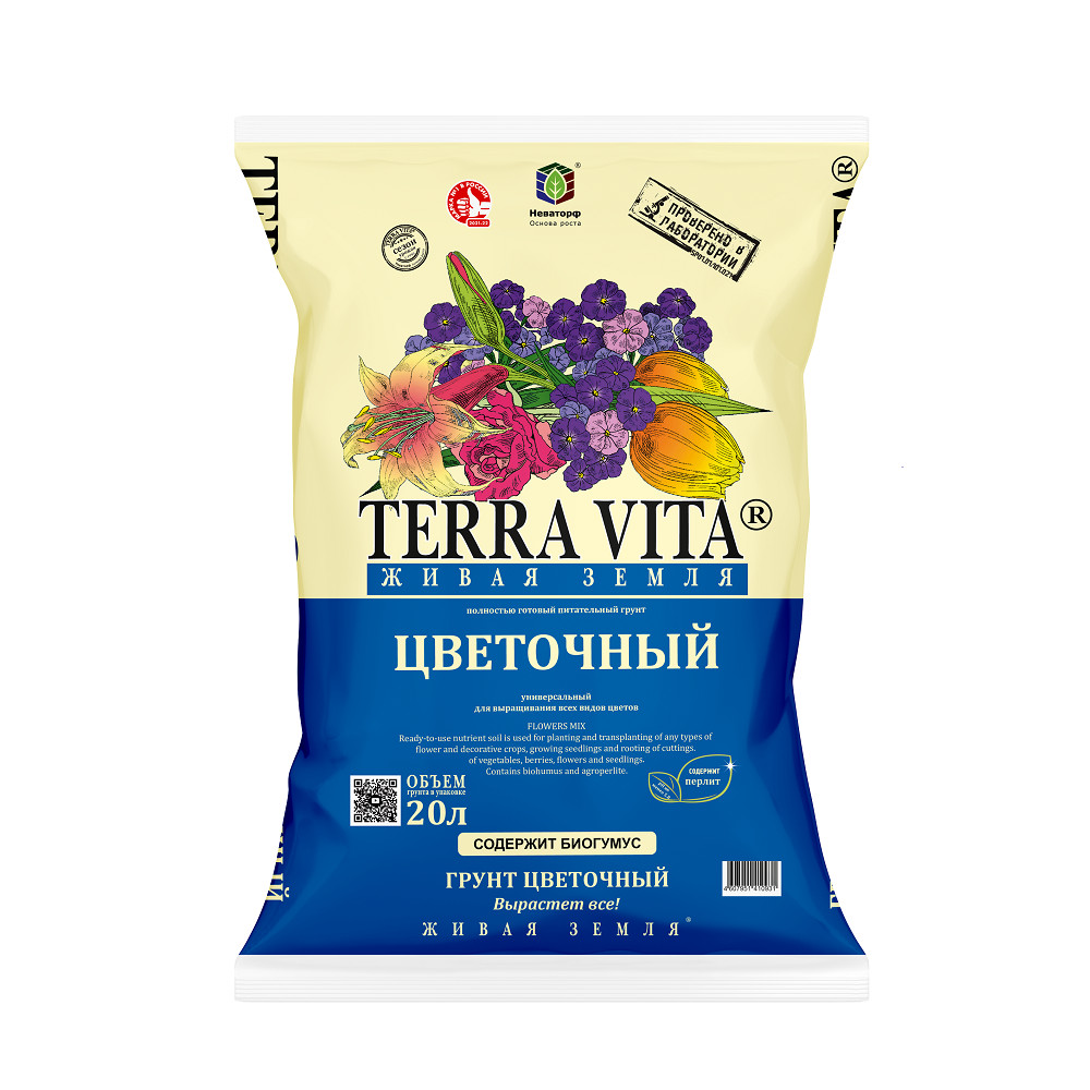 Грунт ЖИВАЯ ЗЕМЛЯ цветочный 20л