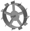 Колеса выполнены из сплошной ленты металла по ободу грунтозацепа. На такие колеса возможно налипание грунта, но они менее подвержены деформациям."Вал колес (фрез) Круглый 30 мм