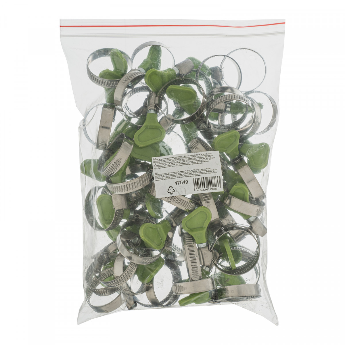 Металлические хомуты Сибртех 47549 с элементом крепления в форме ключа, с диаметром охвата 20-32 мм, 50 шт. в упаковке, используются для соединения труб и шлангов. Подходят для многократного применения. Стяжки-хомуты затягиваются посредством винта-барашка, поэтому для их установки не требуются дополнительные инструменты.