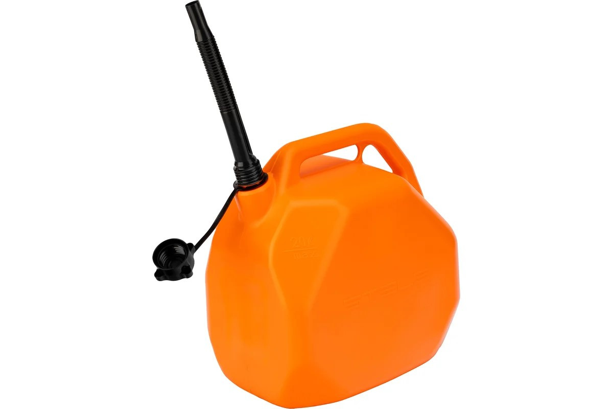 Пластиковая канистра со скошенными углами STELS 53112 объемом 20 литров предназначена для хранения и транспортировки бензина и других горюче-смазочных материалов (ГСМ). Подходит также для обслуживания бензотехники: пил, триммеров, газонокосилок и т.д. Отвечает всем требованиям безопасности и подходит для заправки на АЗС. Пригодится владельцам авто и дачных участков.* ПреимуществаДолговечность — канистра изготовлена из полиэтилена высокой плотности, восьмиугольный корпус отличается повышенной жесткостью и устойчивостьюГерметичность — на крышке имеется уплотнительное кольцо из бензостойкой резины, предотвращающее испарение топливаКомфортное использование — в широкую горловину удобно заливать топливо, гибкий носик удобен для работы в труднодоступных местах и позволяет переливать ГСМ без риска испачкатьсяОптимальный объем — канистра обеспечивает запас топлива 20 л для дозаправки автомобиля и садовой бензотехники