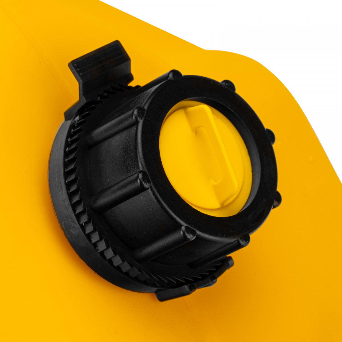 - Полупрозрачный корпус — можно отслеживать уровень заполнения канистры.