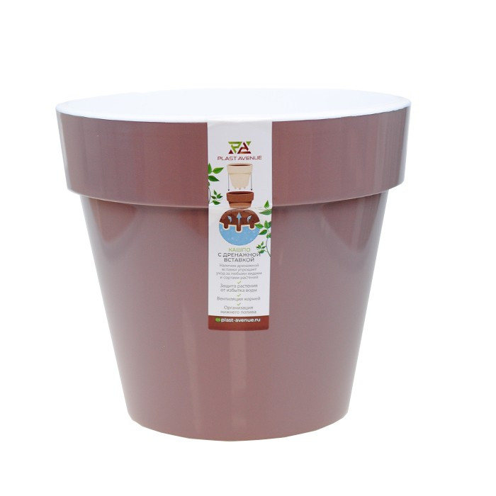 Кашпо Порто пластиковое 2,4л со вставкой мокко