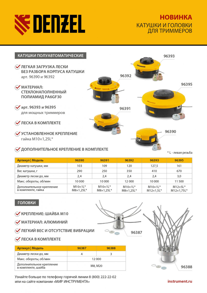 Катушка триммер. полуавтомат., гайка М10, М10, М12, лев. шаг 1,25 1,5 1,5мм Denzel