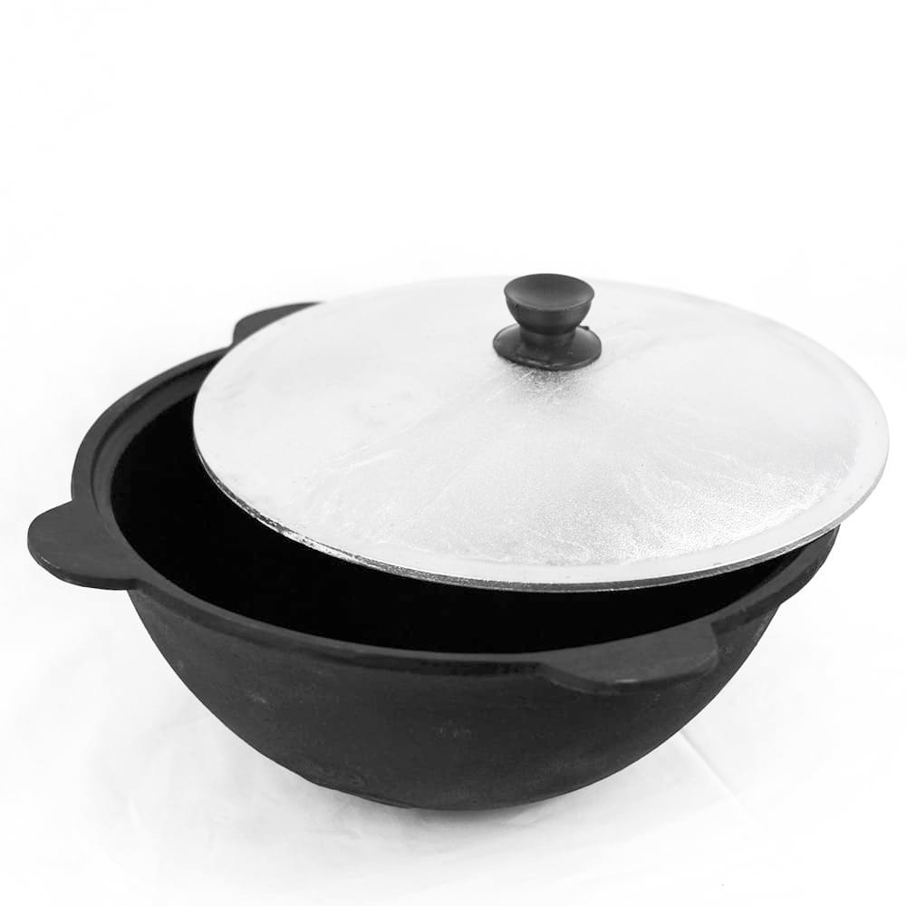 Узбекский чугунный казан - отличное решение для любителей готовить на костре. Этот тяжеловесный узбекский казан вылит из чистого чугуна, без примесей, что гарантирует качество казана. Казан комплектуется алюминиевой крышкой.