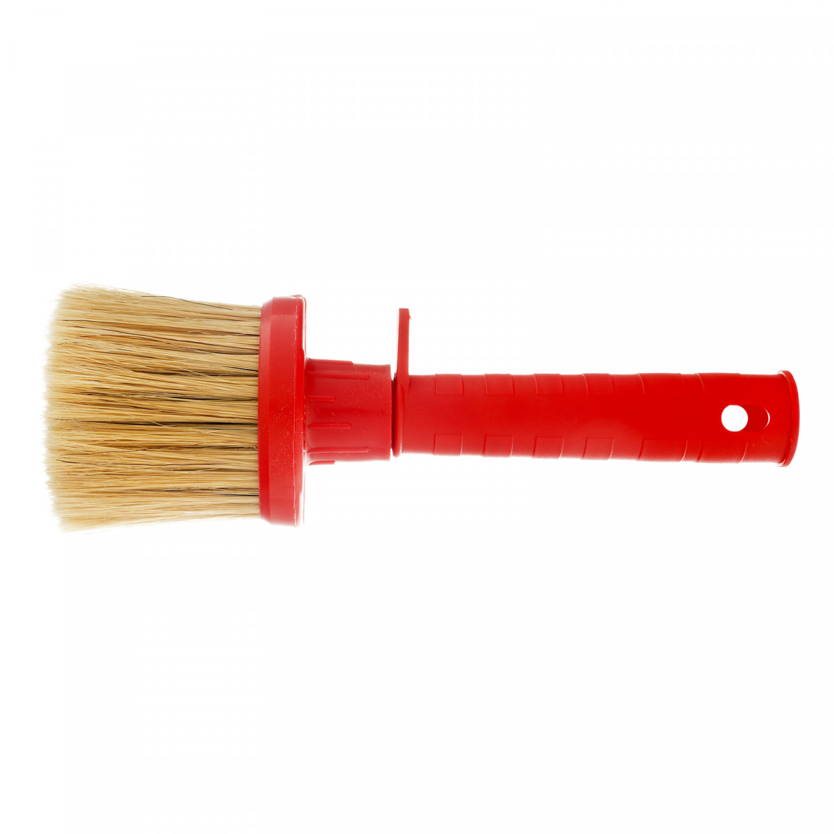 Маховая кисть Matrix KM 65 84006 с натуральной щетиной, пластиковыми корпусом и ручкой, используется для нанесения краски, побелки или грунтовки на поверхности большой площади. Круглый пучок кустовой набивки позволяет наносить лакокрасочный материал плотным слоем. В составе пучка преимущественно натуральная щетина, поэтому кисть устойчива к износу и не теряет упругости при длительном использовании.