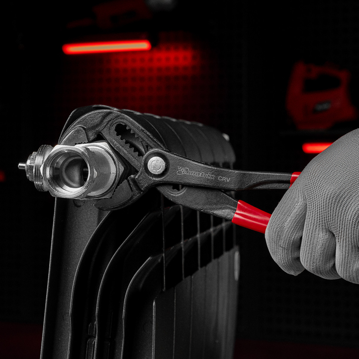 Переставные клещи Matrix 17927 длиной 300 мм, выполненные из хромованадиевой стали, с кнопочным механизмом и обливными рукоятками, используются для проведения монтажных и слесарных работ. Универсальный инструмент заменяет ключи различных размеров и применяется для фиксации заготовок, откручивания гаек, зажима и удержания труб диаметром до 64 мм.