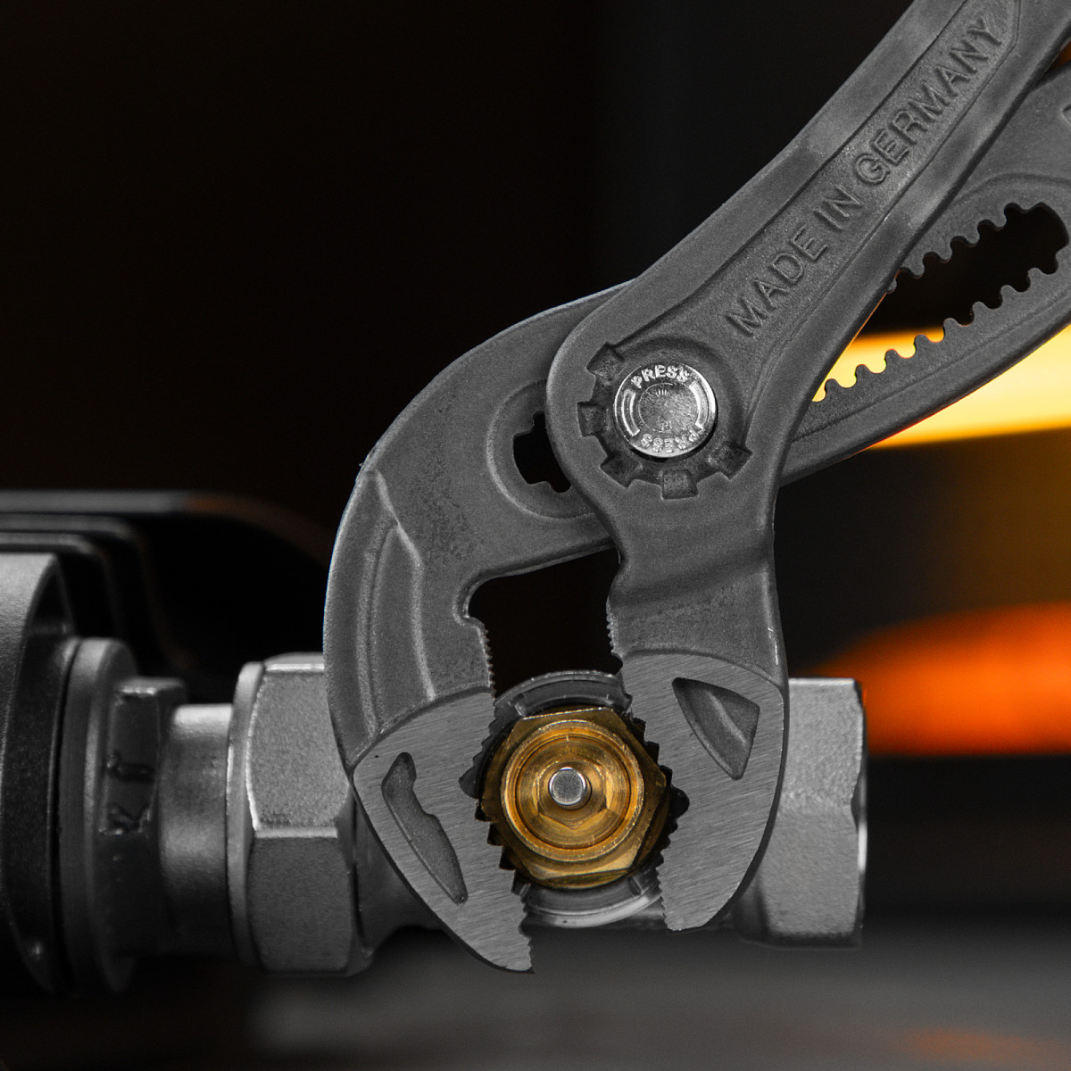 - Универсальность — разнонаправленные зубцы позволяют удерживать детали как с круглым, так и с квадратным профилем.
