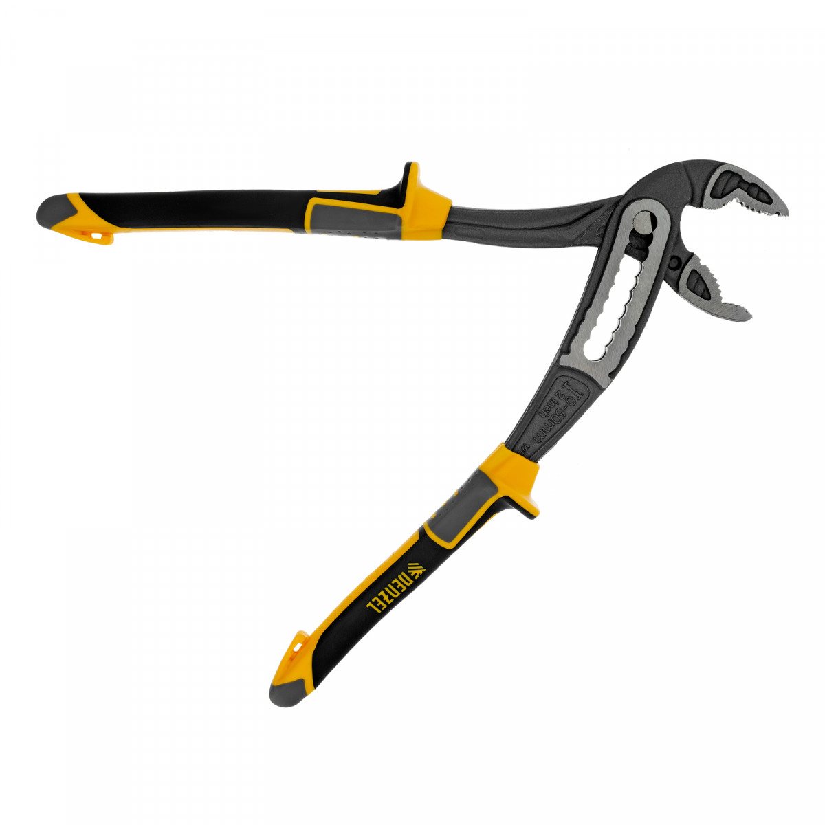 Переставные клещи Denzel 17900 длиной 240 мм, с трехкомпонентными рукоятками, предназначены для фиксации и вращения деталей и заготовок различной формы. Подходят для захвата фитингов, труб, крепежных элементов. Инструмент используется при проведении ремонтных, монтажных, сантехнических работ.