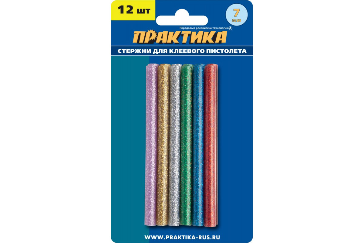 Клей для клеевого пистолета Практика цветные, 6 цветов, металлик, 7*100 мм, 12шт/блистер