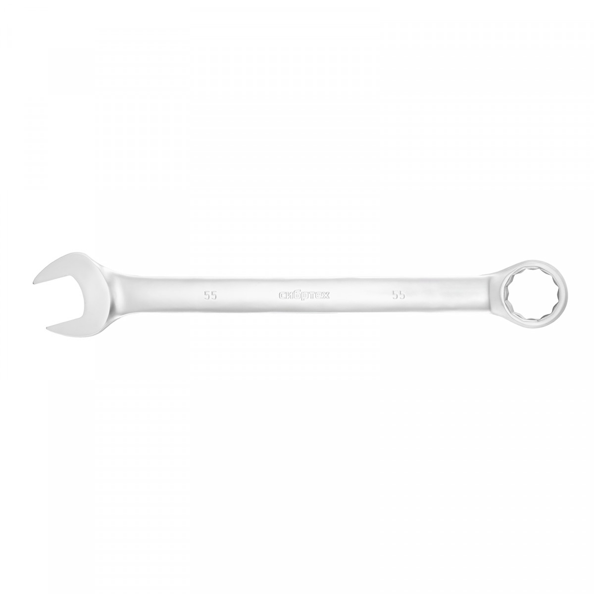 Ключ комбинированный 55мм, никелированный от компании Сибртех — надежный инструмент для работы с крепежом различных размеров.