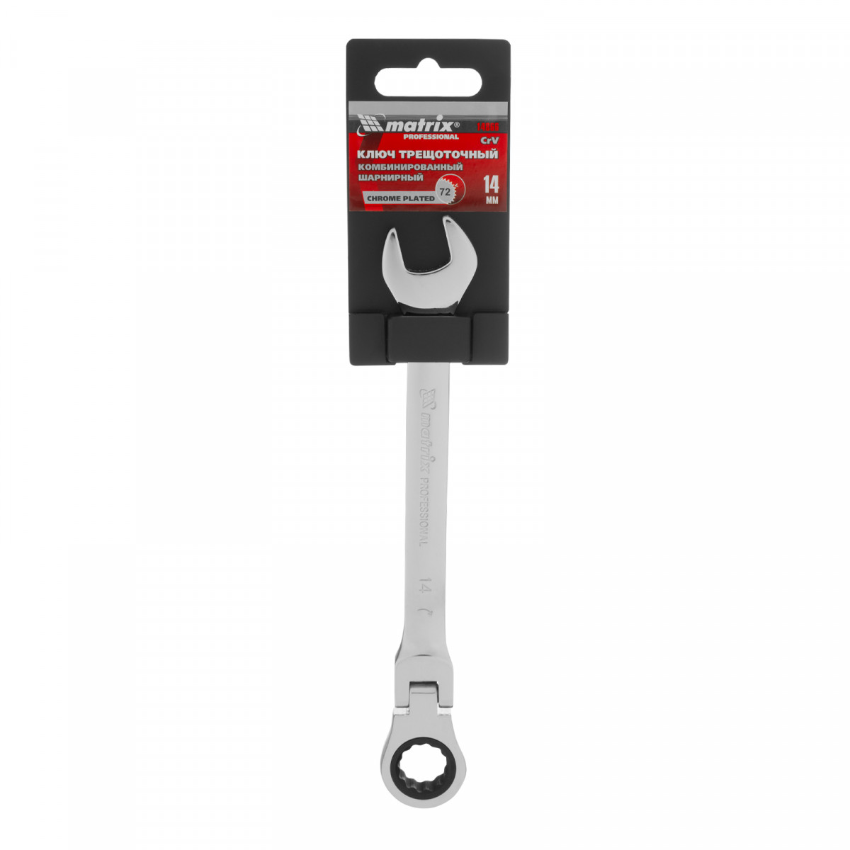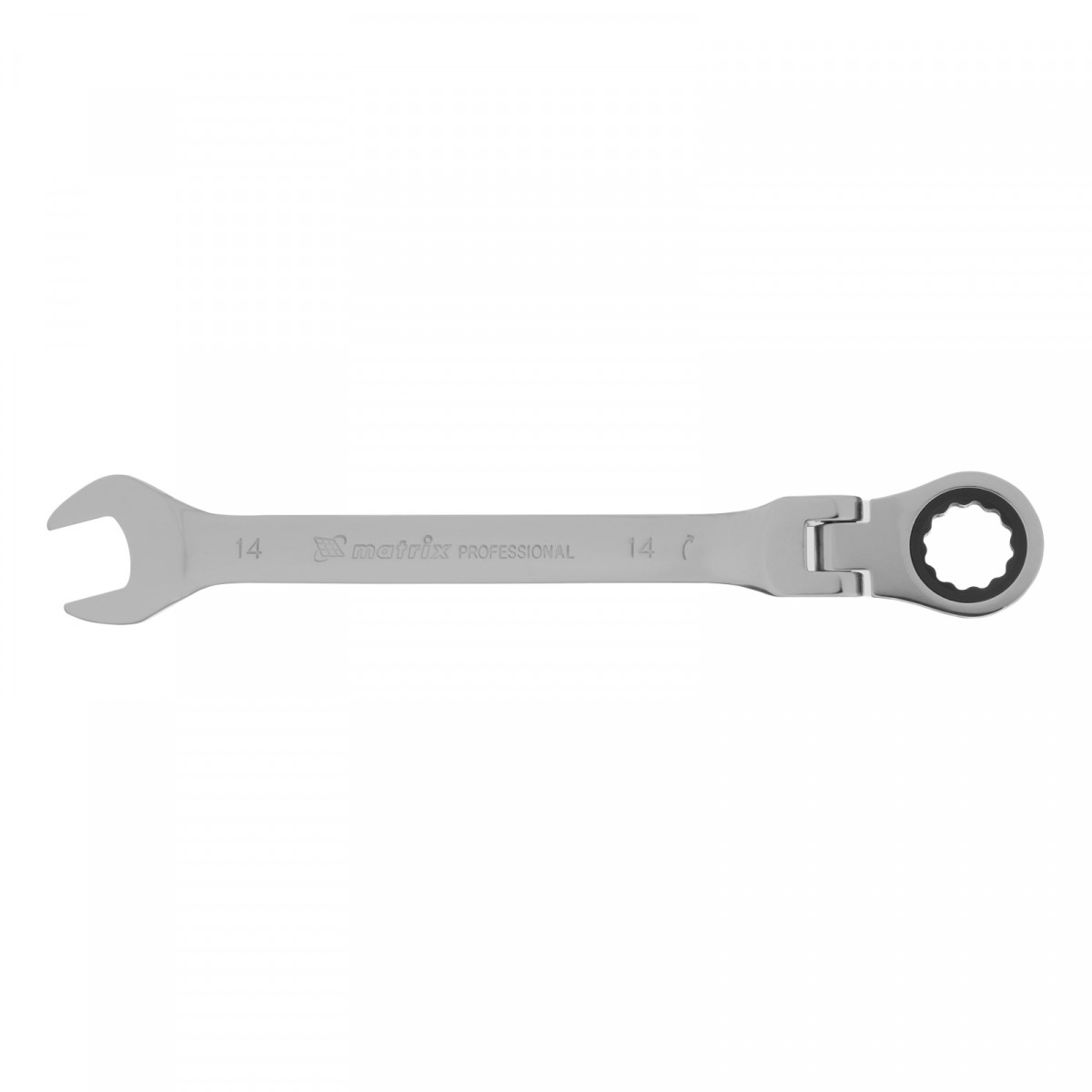 Ключ комбинированный трещоточный, 14 мм, CrV, шарнирный, зеркальный хром Matrix Professional