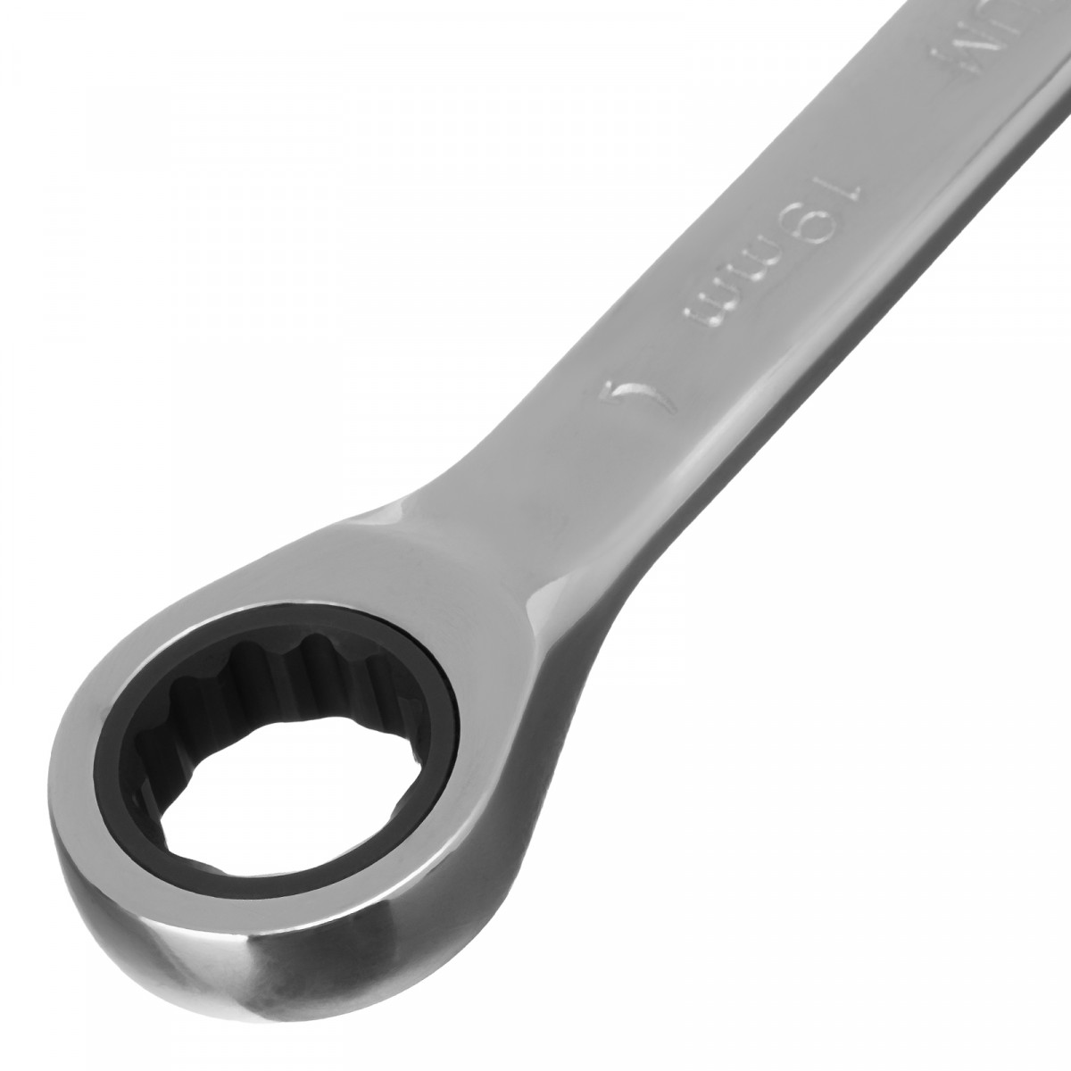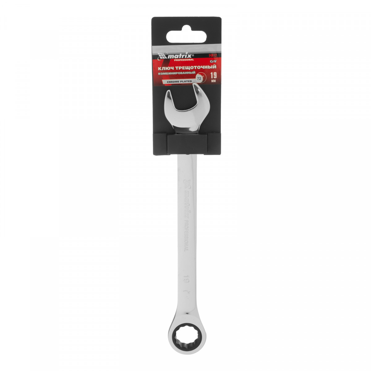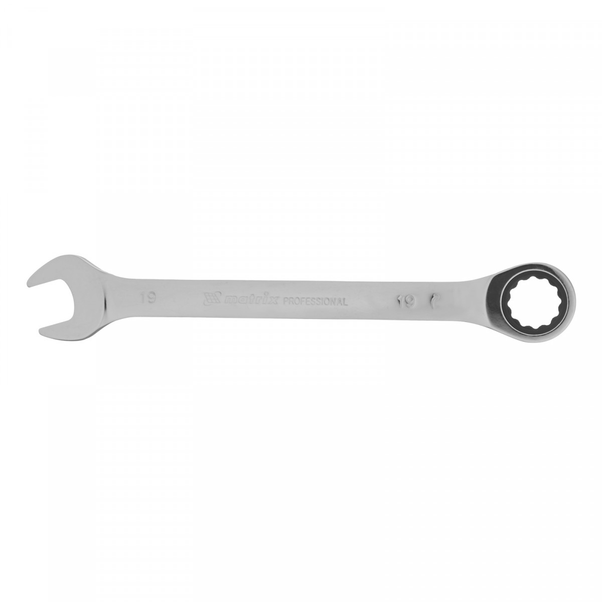 Ключ комбинированный трещоточный, 19 мм, CrV, зеркальный хром Matrix Professional