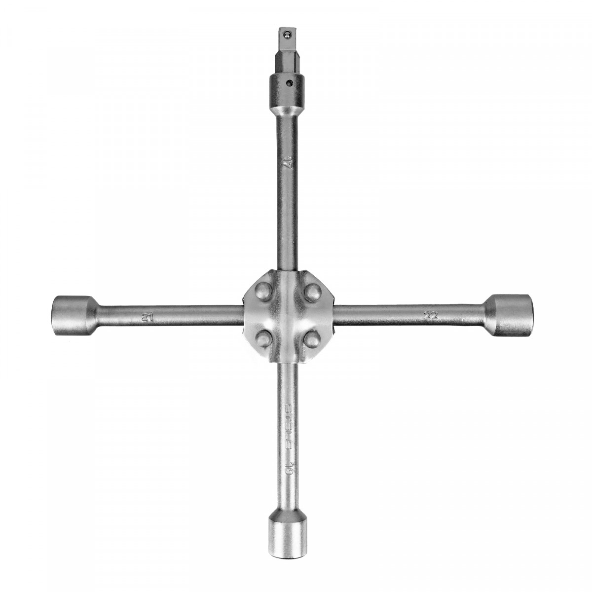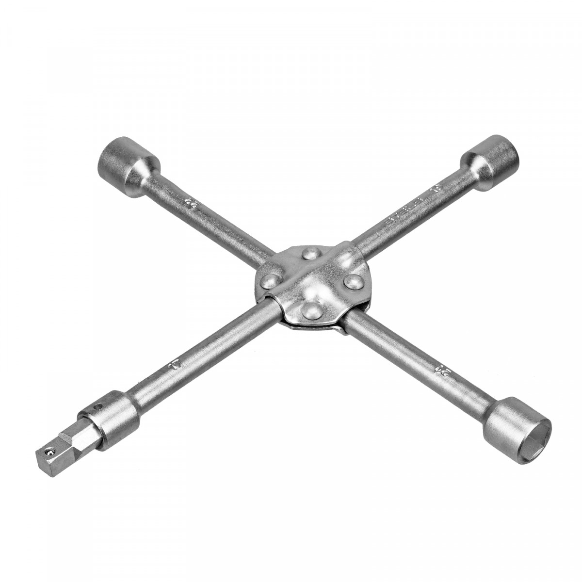 Ключ-крест баллонный, 17 х 19 х 21 х 22 мм, под квадрат 1/2, усиленный, с переходником на 1/2 Stels