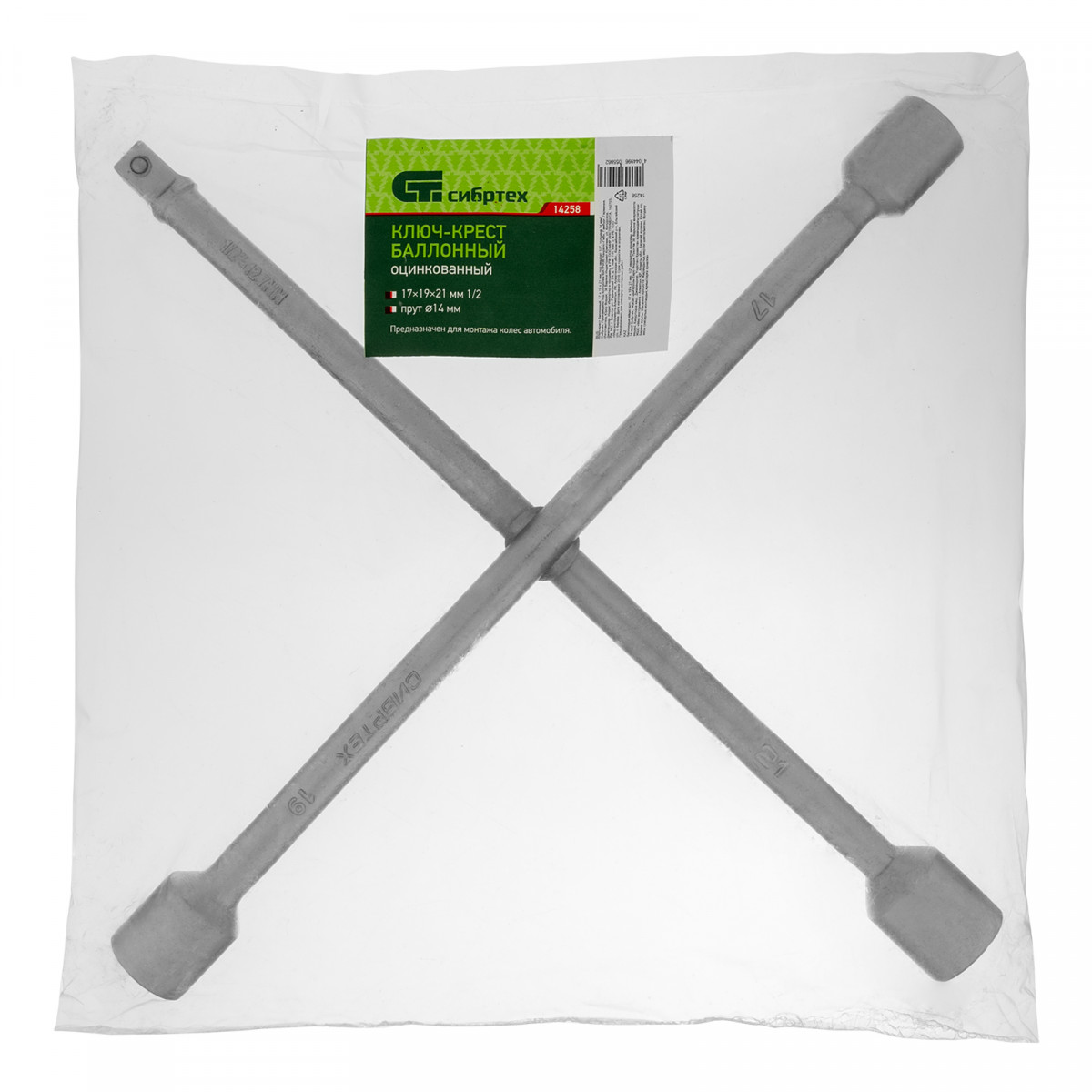 Ключ-крест баллонный, 17 х 19 х 21 мм, под квадрат 1/2, толщина 14 мм Сибртех