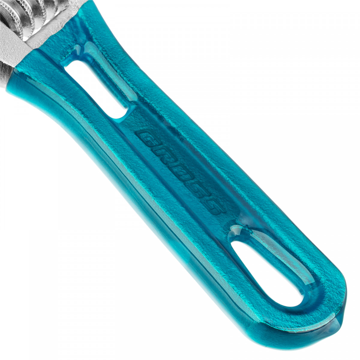 • Укороченная нескользящая рукоятка и тонкие губки — ключом удобно работать в труднодоступных местах.