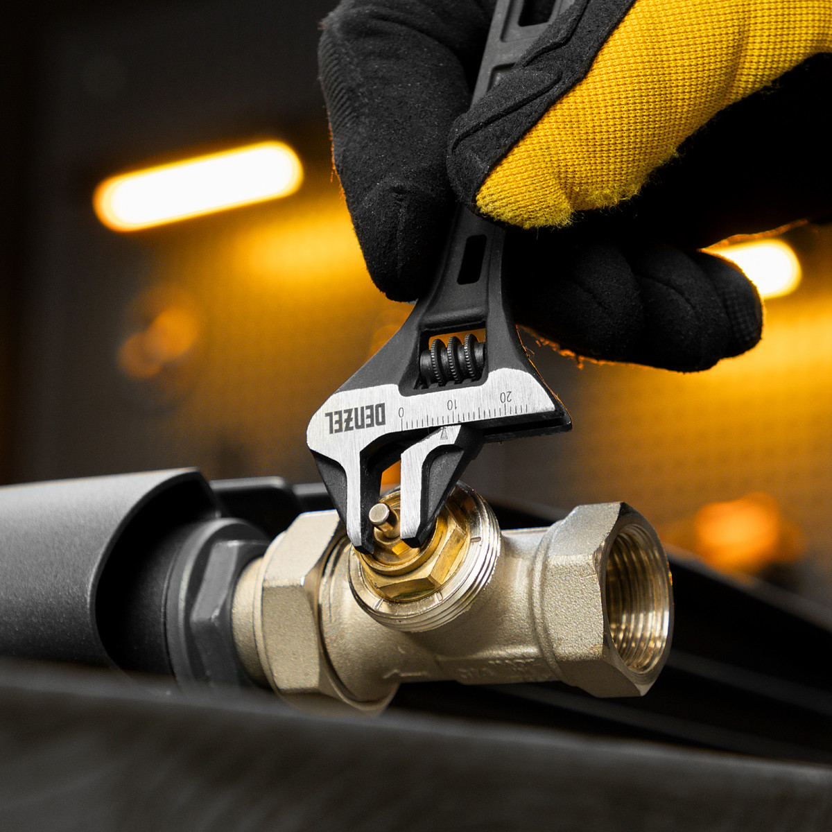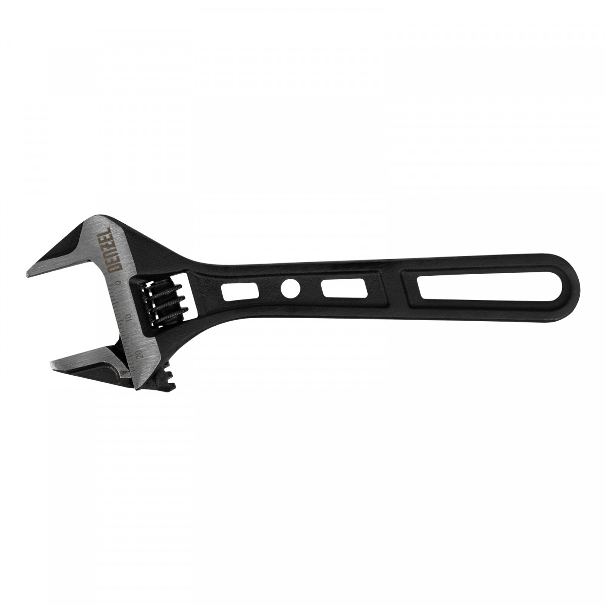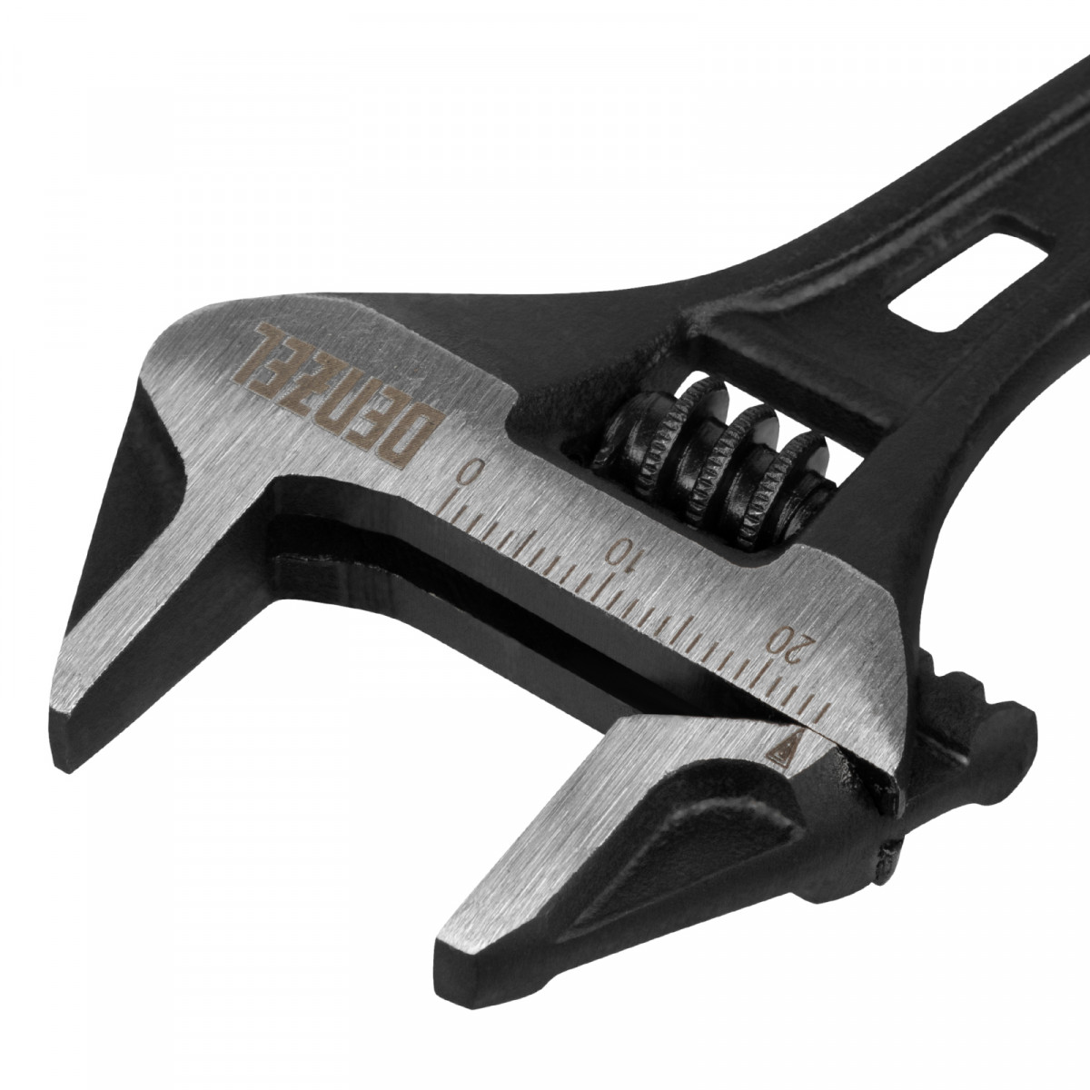 Усиленная кованая конструкция с дополнительными ребрами жесткости делает ключ Denzel износостойким и долговечным.