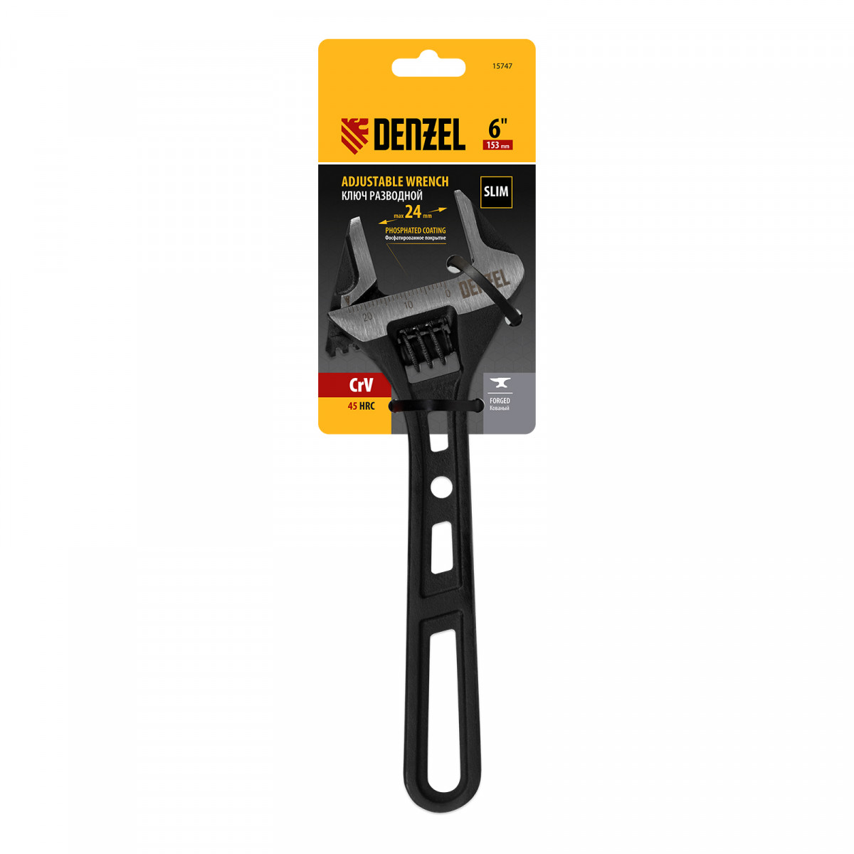 Ключ разводной, 150 мм, CrV, кованый Denzel