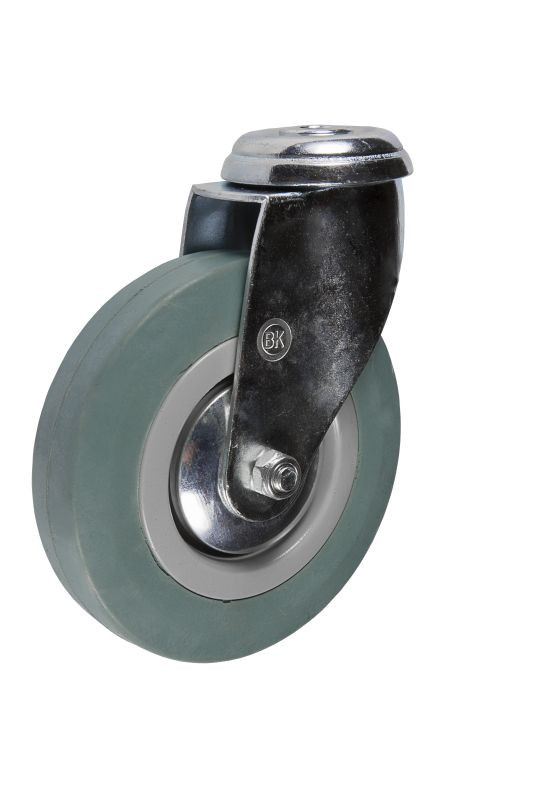 Колесо серая резина поворотное крепление под болт SChg42 предназначено для перемещения грузов в закрытых помещениях.Применяются для аппаратуры, бытовой и офисной мебели, для медицинской техники и оборудования, металлической мебели, стеллажей, на тележки-"шпильки"для пищевых производств, для гостиничного оборудования и химчисток,а также для торгового оборудования и торговой мебели.Колеса аппаратные могут использоваться при температуре от -20 до +50C. Скорость эксплуатации колес аппаратных не должна превышать 5км/час.Колеса из серой резины отличаются от промышленных колес своей маневренностью и мягким ходом. Колеса аппаратные оснащены двухрядным шарикоподшипником в поворотном узле и осевой втулкой скольжения.Шинка аппаратного колеса произведена из термоэластичной резины серого цвета, которая не оставляет следов на полу. Спектр использования колес с серой резиной огромен.