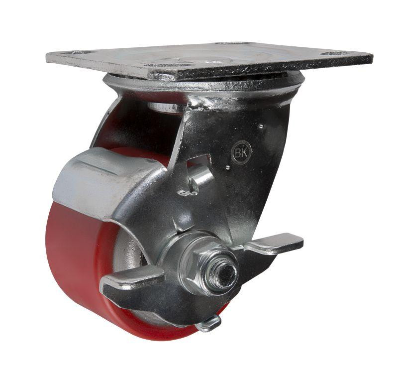Колесо полиуретановое большегрузное с тормозом SCpb42 для тачек и тележек является грузоподъемным. Чугун служит основой для производства обода полиуретановых колесных опор с тормозом SCpb42.