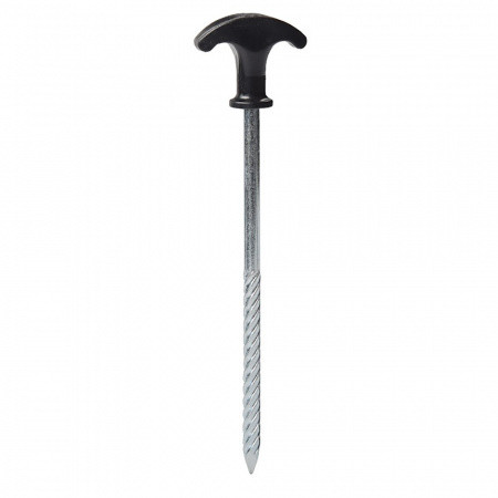 Набор колышков Т-образной формы с резьбой. Отличаются большим весом, резьбой на половине длины, пластиковой ручкой для удобства вкручивания. Предназначены для усиленной фиксации через люверсы палатки.