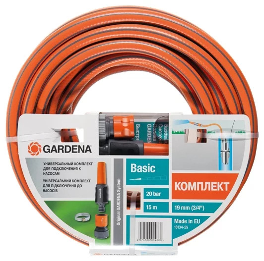 - шланг, наконечник для полива Classic 18300-20, хомут для крепления шланга к насосу, коннектор стандартный 3/4"