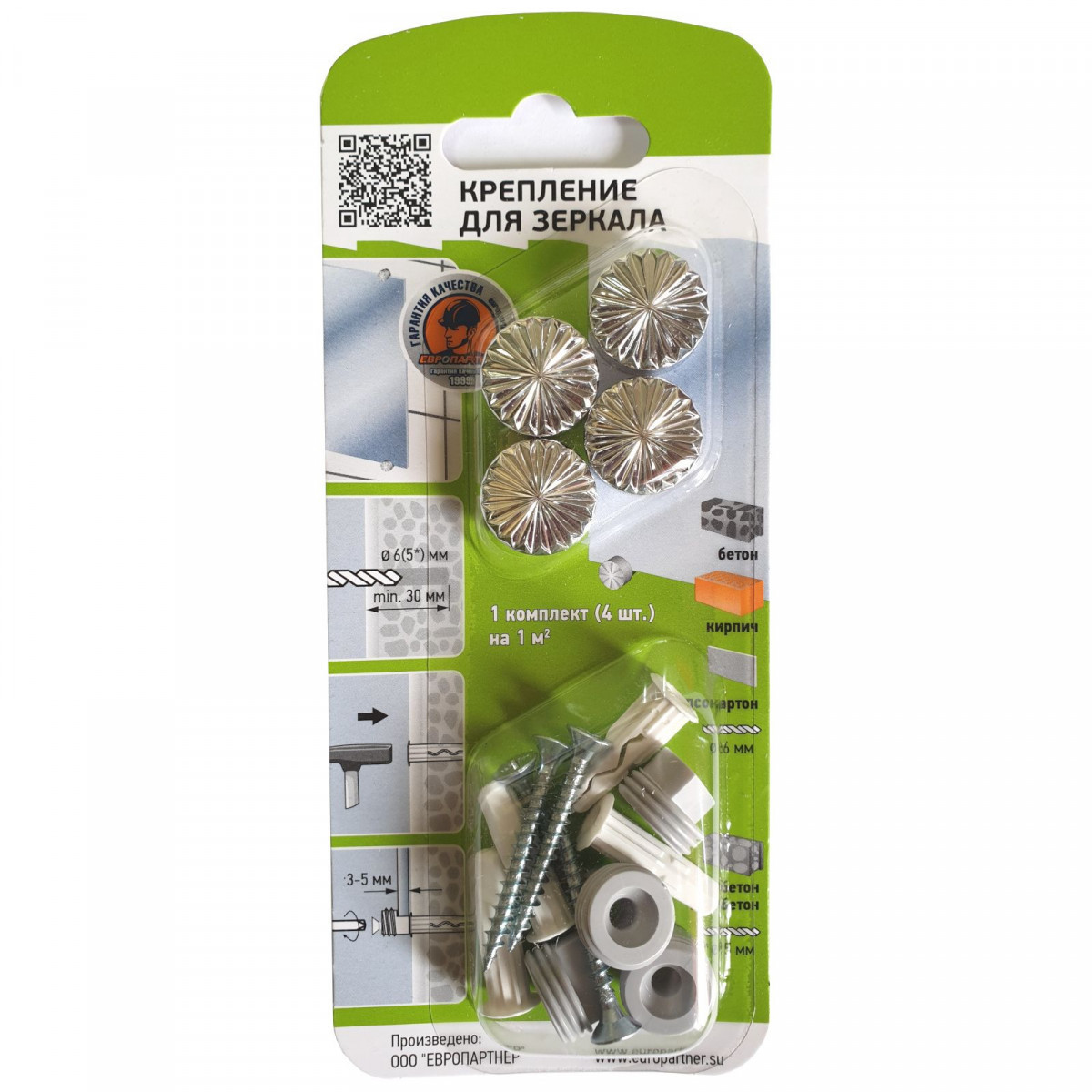 Комплект крепления для зеркала хром, гладкое покрытие, предназначен для надежной фиксации зеркала. Один комплект содержит 1 шт. крепления. Изготовлен из прочного материала, обеспечивает долговечность и надежность крепления зеркала на стене.