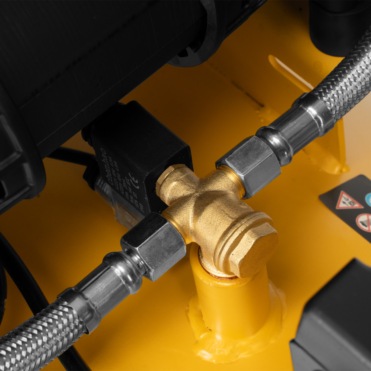 - Безопасность — в случае превышения максимального давления в ресивере срабатывает предохранительный клапан, что позволяет избежать аварийных ситуаций.