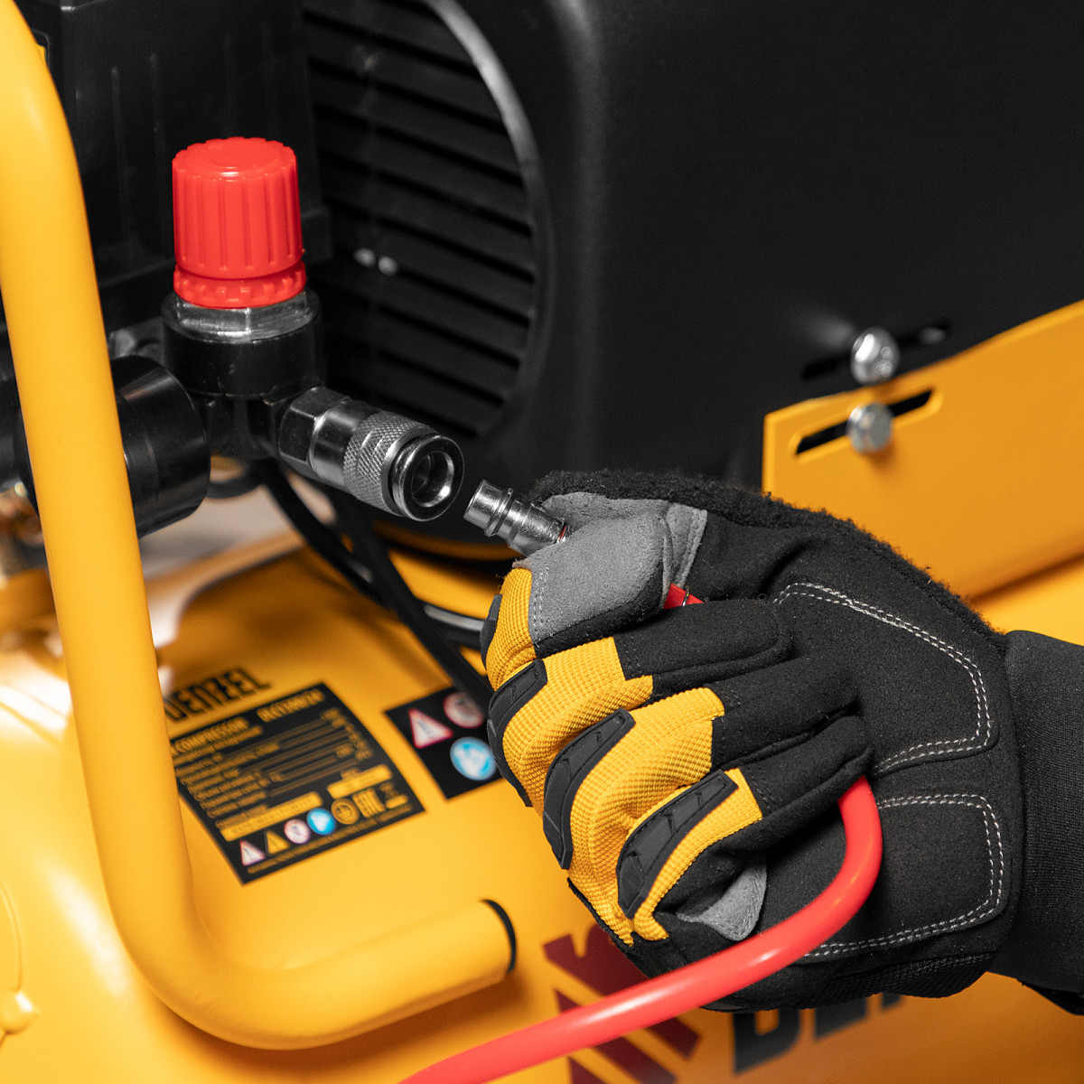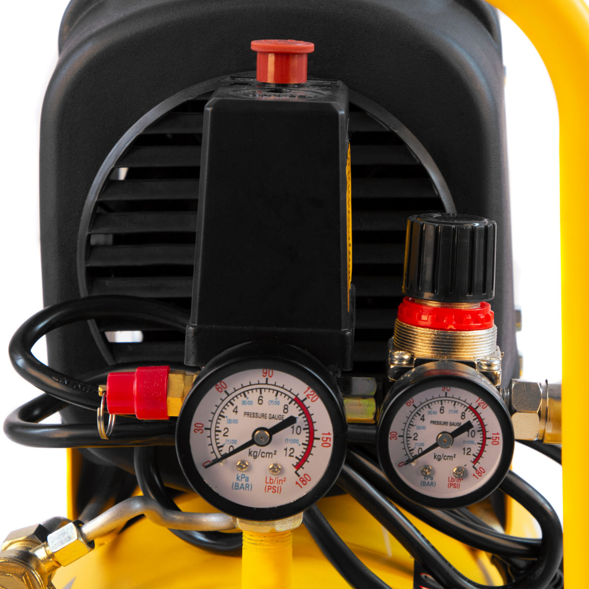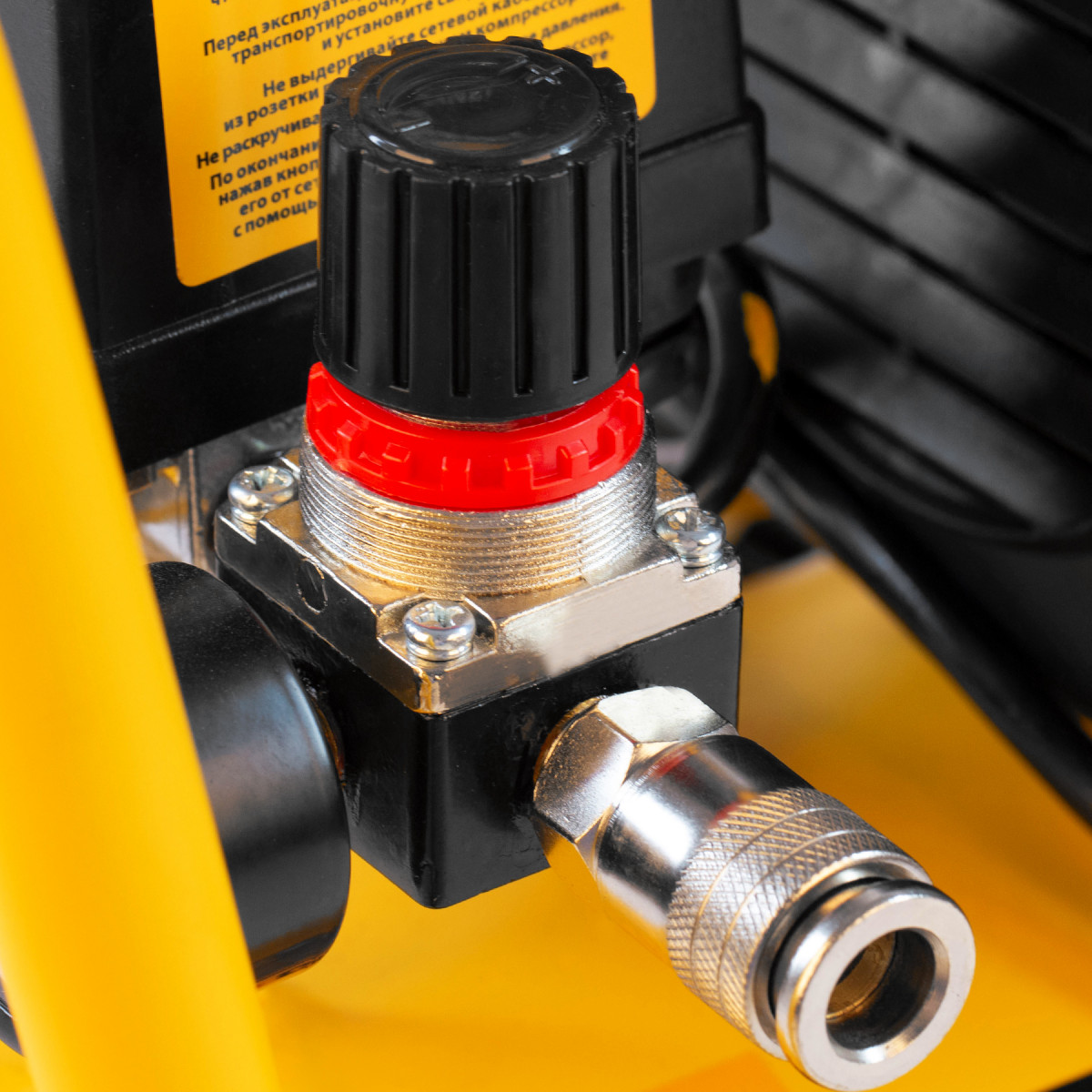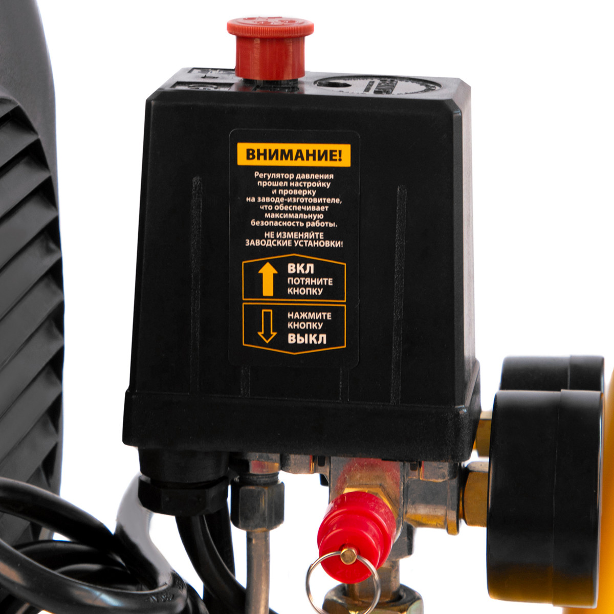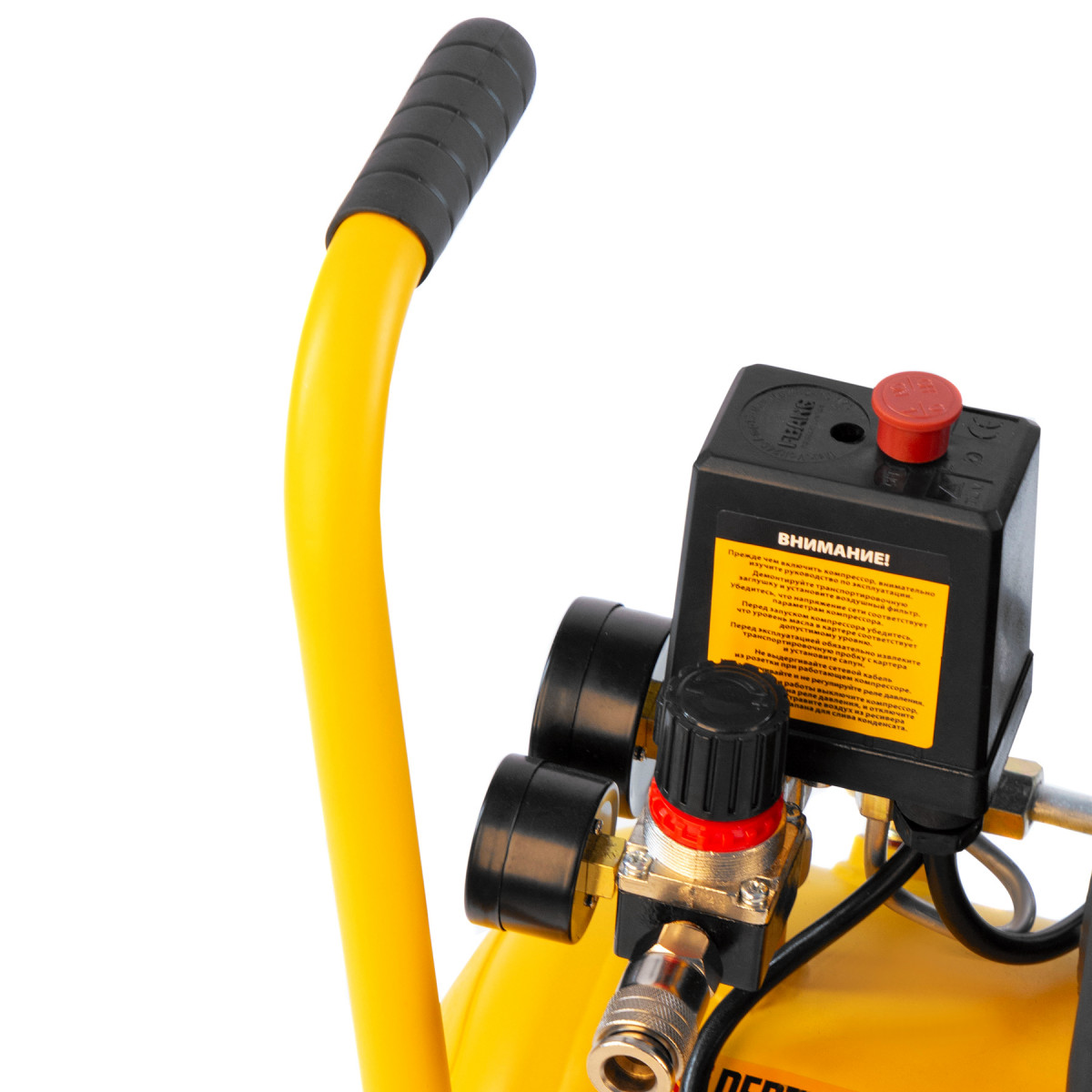 • Контроль рабочих параметров — компрессор оснащен двумя манометрами для отслеживания давления в пневмолинии и ресивере.