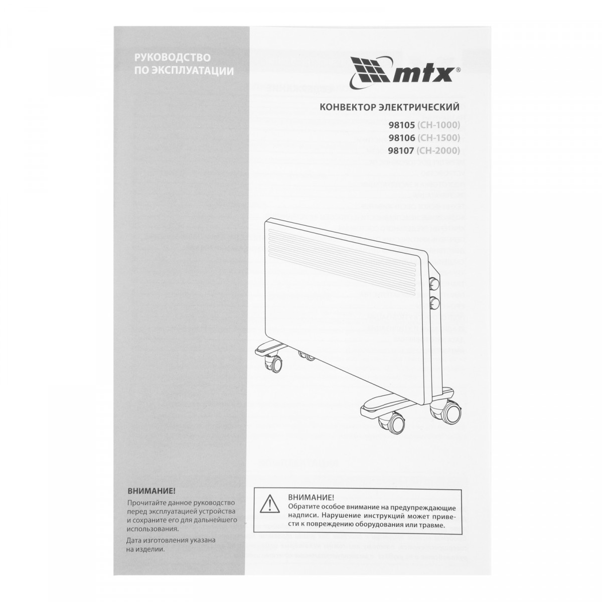 Электрический конвектор MTX CH-1500 98106 максимальной мощностью 1500 Вт, с X-образным нагревателем, термостатом и колесами, — источник тепла для жилых, офисных и хозяйственных помещений. X-образный нагревательный элемент позволяет быстро и равномерно нагреть помещение до нужной температуры. Площадь обогрева составляет 20 м2.