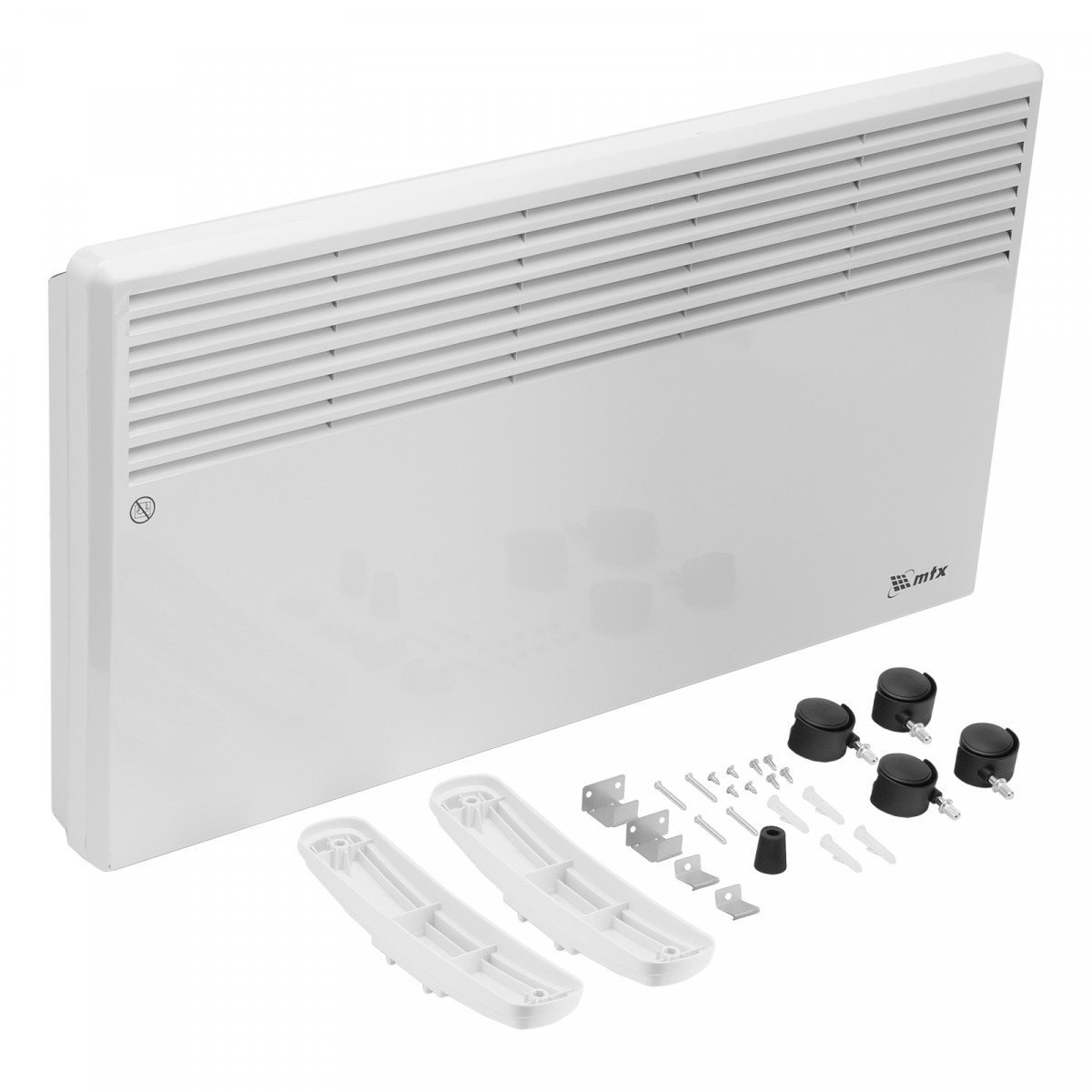 Электрический конвектор MTX CH-2000 98107 максимальной мощностью 2000 Вт, с X-образным нагревателем, термостатом и колесами, — источник тепла для жилых, офисных и хозяйственных помещений. X-образный нагревательный элемент позволяет быстро и равномерно нагреть помещение до нужной температуры. Площадь обогрева составляет 25 м2.