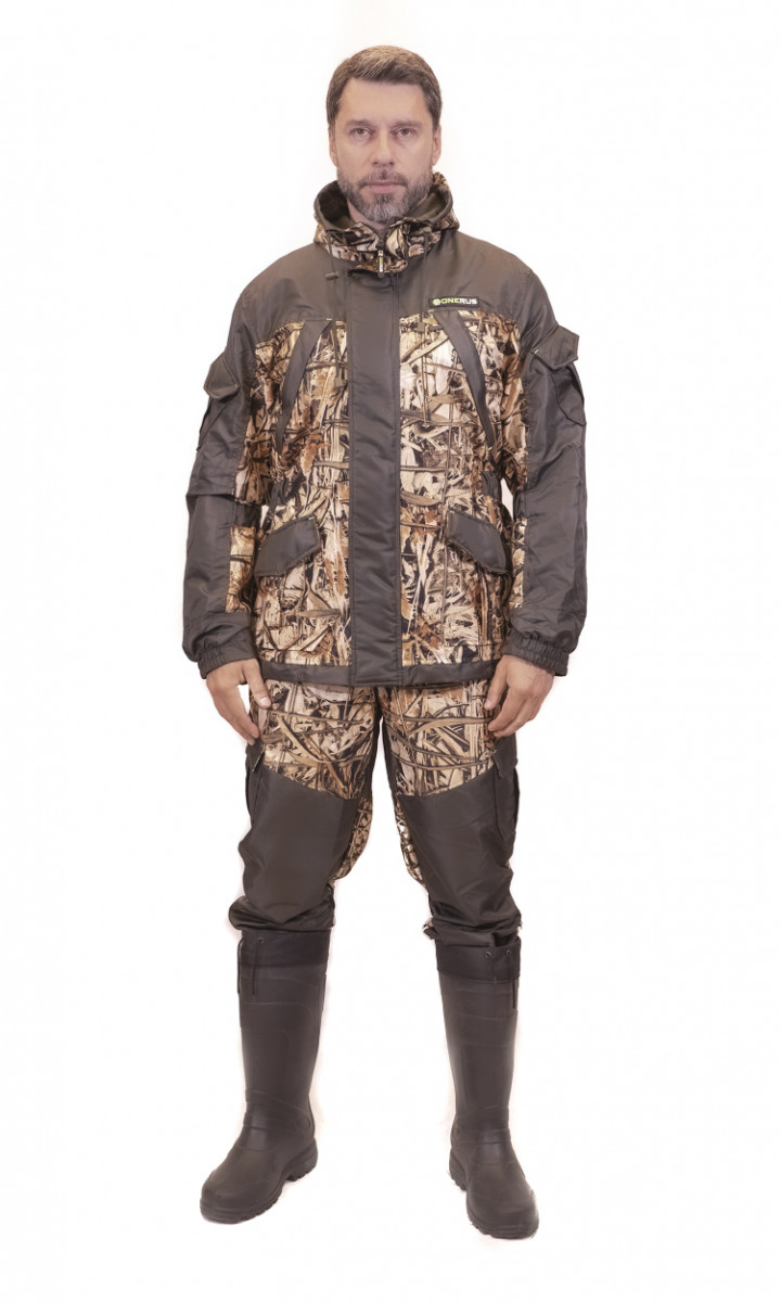 Основная ткань : Алова 5000/5000 100% полиэстер. Отделка: Кошачий глаз 5000/5000. Состав: 100% нейлон. Подклад: Флис / Таффета. Состав: 100% полиэстер. Ткань Алова - мягкий, бесшумный, мембранный материал, с фирменным принтом. Модели костюмов "ГОРНЫЙ" от компании OneRus отлично зарекомендовали себя среди любителей рыбалки, охотников и туристов. Использование современных материалов при производстве делает костюм универсальным.. Дополнительная защита в местах истирания. Костюм оснащен съемными подтяжками типа "кобура". Данная модель отлично себя зарекомендовала среди охотников на водоплавающую дичь.