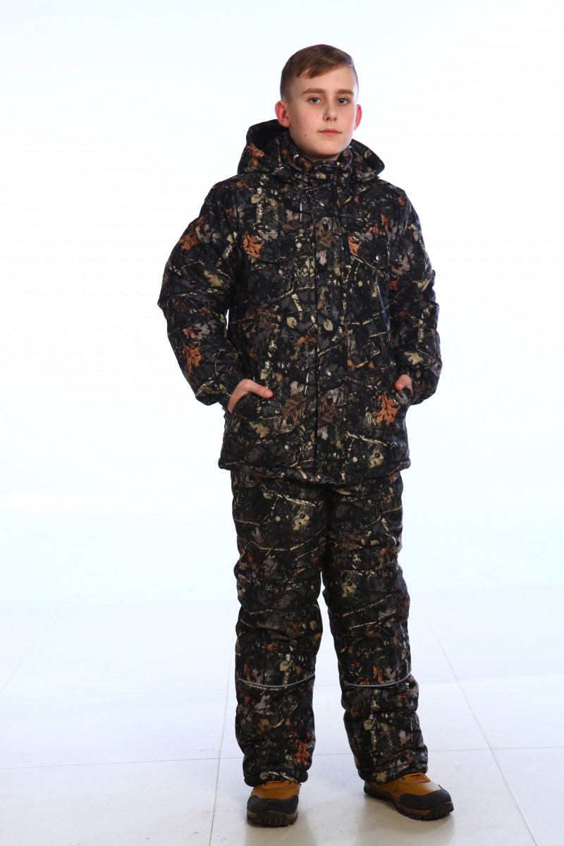 Костюм Морозко выполнен из мембранной ткани. На спинке куртки и нижней части полукомбинезона имеются светоотражающие ленты, которые очень хорошо засвечиваются и видны издалека в света фар или фонарика! Куртка свободного кроя с застежкой на молнию, закрывается планкой на кнопках. Низ куртки утягивается резинкой с фиксаторами. На куртке имеются 6-ть карманов: 2-а нагрудных накладных на кнопках, 2-а нижних прорезных утепленные флисом и 2-а внутренних кармана из флиса. Съемный капюшон регулируется резинкой с фиксаторами. Воротник - стойка, выполнен из флиса. На куртке имеется элемент "флэп" - это планка огибающая замок молнии, сделано это для того, чтобы застежка не касалась шеи и подбородка. Манжеты на рукавах на резинке. Полукомбинезон с застежкой на молнию и двумя накладными карманами, утепленными флисом. Полукомбинезон усилен наколенниками.